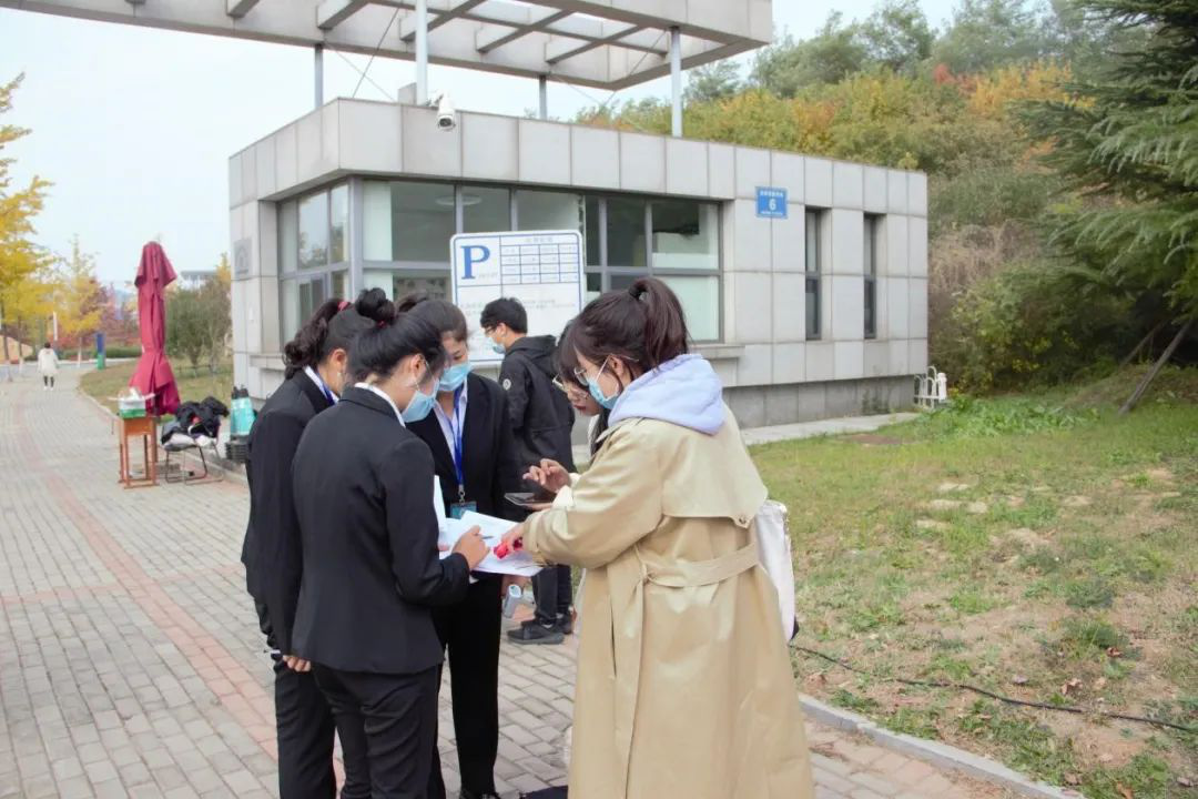 、俄语学院、亚非语言学院相关负责老师带领团队提前到达风雨操场进行最后的准备。对会场布置、方位布局、展板企业数量与名称等等进行清点核对,力求正确无误,整齐如一。志愿者们则认真落实培训内容,在学校南门、校车点、风雨操场门口等候用人单位,并进行体温测量、道路指引。拍摄人员各司其职,提前到达会场内外的拍摄点,严守岗位,无一纰漏。从搭建场馆开始,每位老师和工作人员在自己的岗位上,保持最紧张的工作状态,力求为用人单位和学生提供最好的服务。
