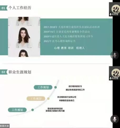 于腾讯会议开展就业经验线上分享会。两次分享会分别邀请到学院牛婉婷学姐、牛晴学姐、李雨浓学姐、张宏琛学姐作为主讲人,18级、19级以及20级学生参加此次分享会。