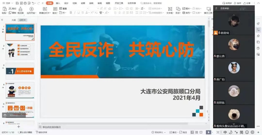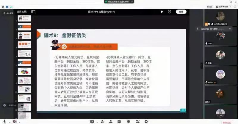 我校邀请旅顺公安内保大队警官开设一堂“反诈骗知识宣传课”,向同学们讲述反诈信息。结合师生身边多发的杀猪盘诈骗、网上购物售后问题被诈骗、网络兼职(刷单)被诈骗等实际例子,详细介绍了电信网络犯罪的六大手段,并逐一进行解密骗术宣传。我院各班班长、团支书以及寝室长全员参与这次课程,培养了一批防骗反诈能手,进而以班级和寝室为单位向同学们传授防骗方法、提高反诈意识。