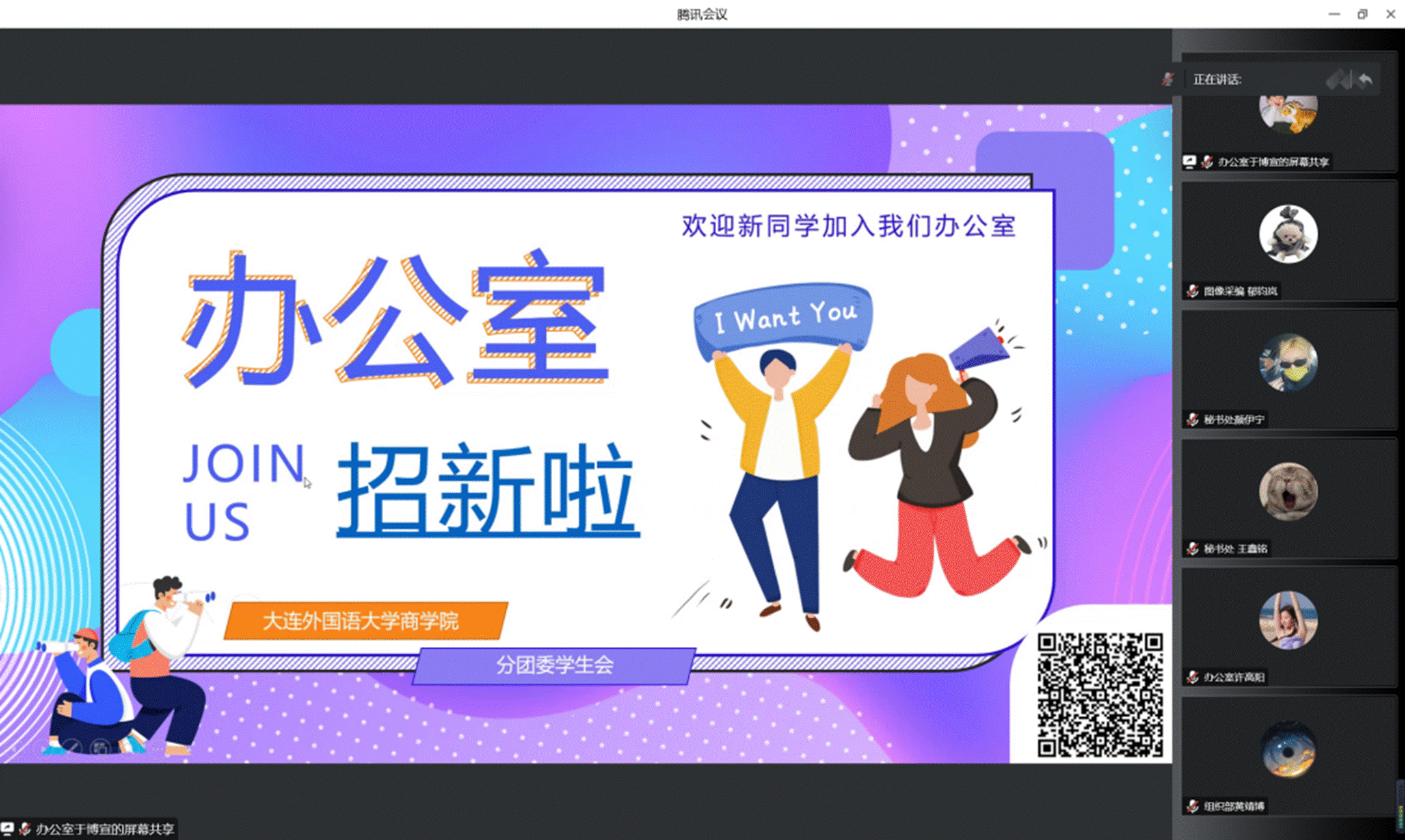 为了让新生更全面地了解分团委学生会,学院于线上召开学生组织招新专场宣讲说明会,各部门轮流展开部门介绍,从工作内容、部门要求、能力收获等方面为大家讲解,让同学们对意向部门有更加全面的了解。