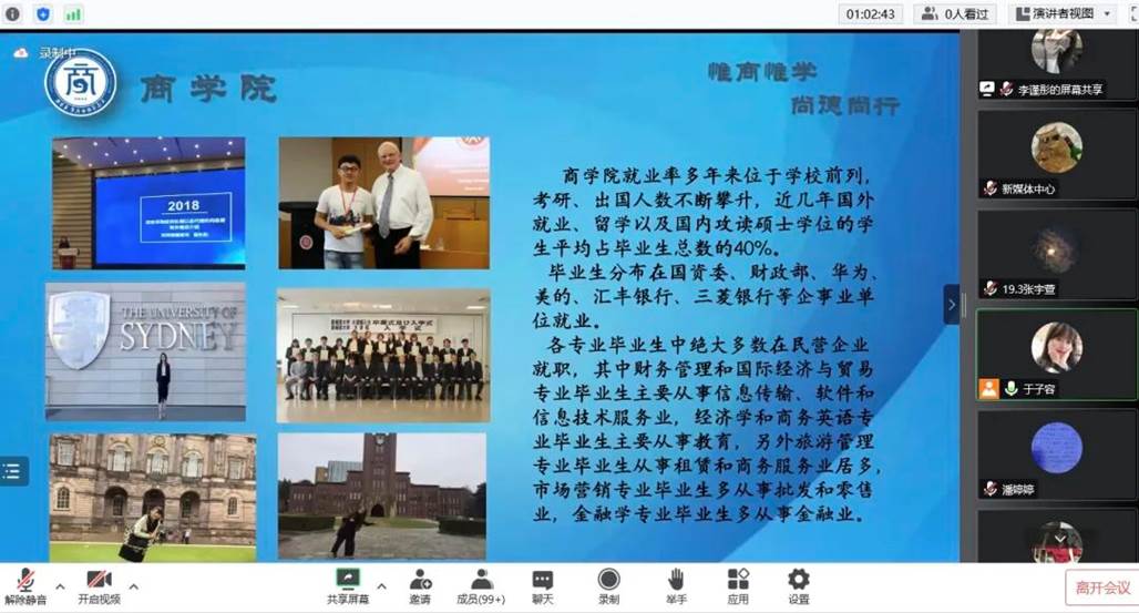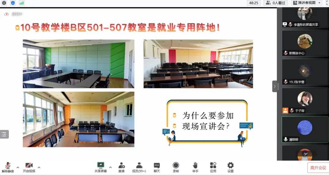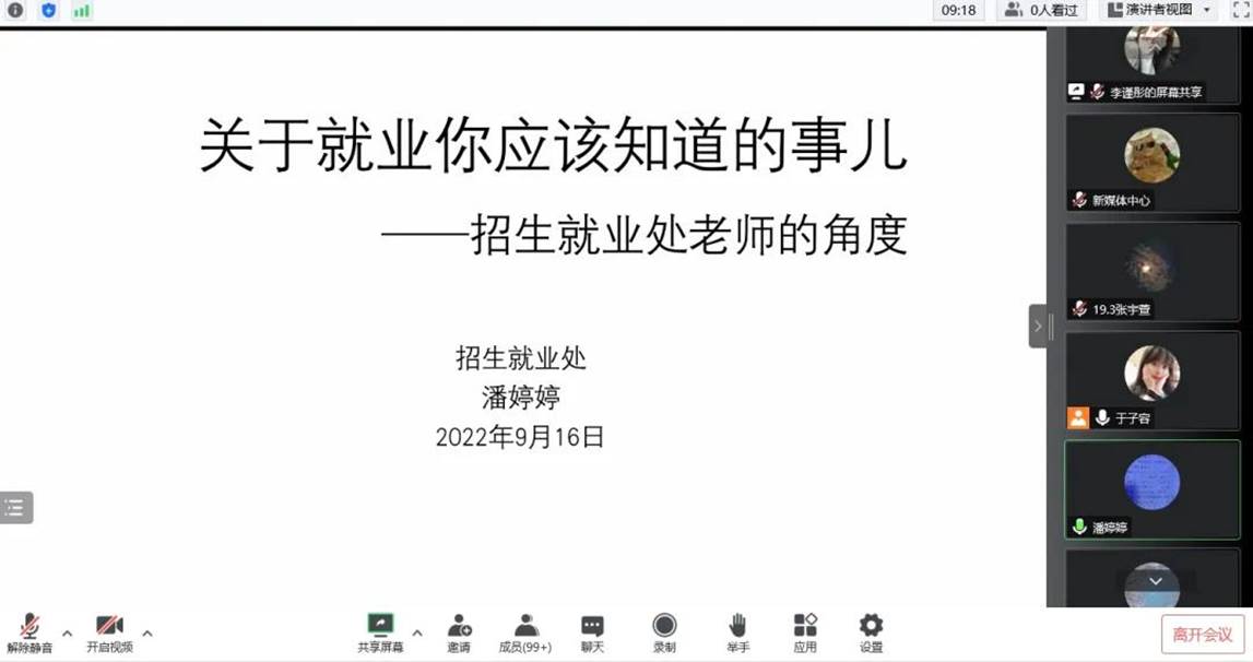 各专业的就业情况和优秀毕业生典例做了简单介绍,并通过求职准备、简历制作、面试技巧等方面的分享,进一步帮助提高同学们的就业竞争力。同时,于老师建议大家珍惜应届生身份,警惕“慢就业”。