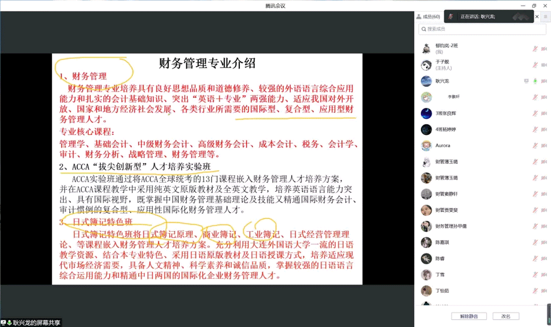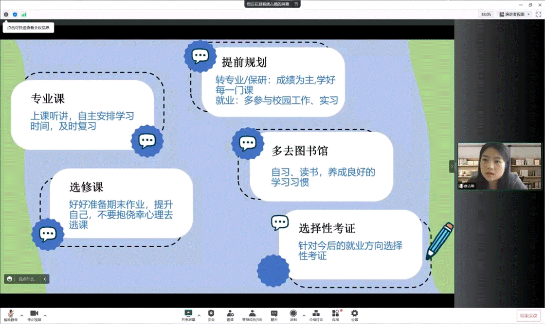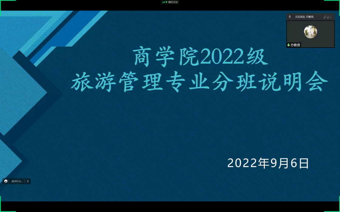 召开2022级旅游管理、财务管理及市场营销专业分班说明会,本次会议采用腾讯会议于线上举行。由于子舰老师主持,方雅贤老师、耿兴龙老师、李振坤老师主讲,18级白子英,19级苗光瑶、唐占璐、王珂、丁怡茹,20级党妙南、陈可欣分别做了分享,22级旅游管理、财务管理、市场营销专业全体同学参加。
