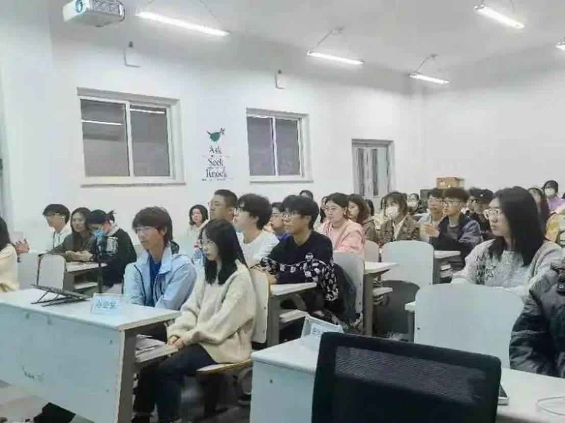 分团委书记钟俊英主持,邀请到曾任学院第五届分团委学生副书记苗光瑶学长作为主讲人,分享自己大学成长经历和心得体会。