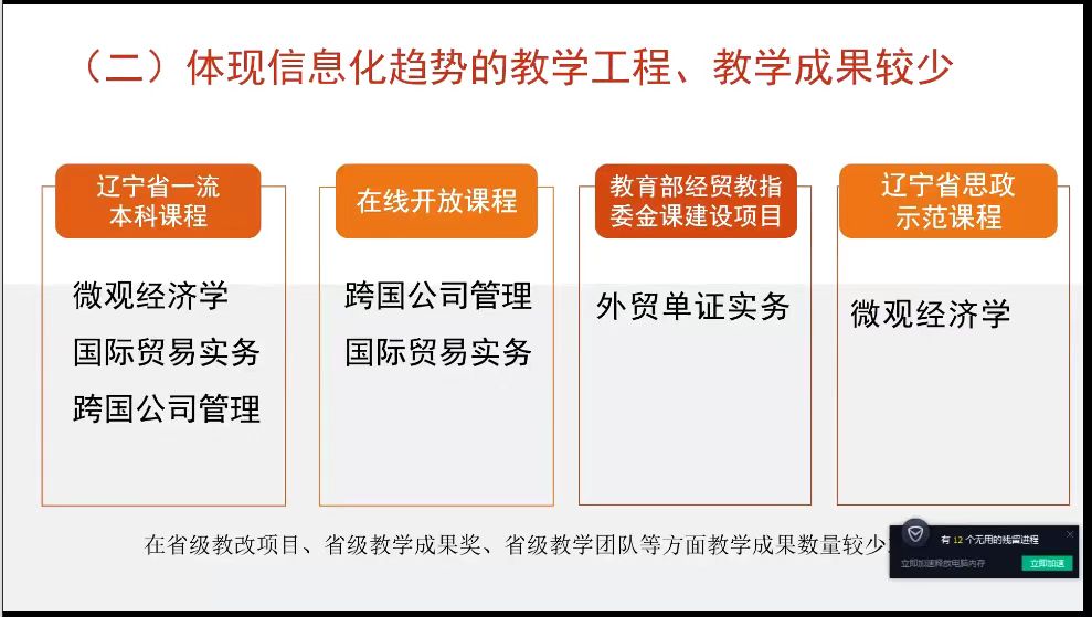 国际经济与贸易专业在专业数字化转型的思考中提出四点意见和思考:第一,优化课程设置,体现数字贸易发展趋势;第二,提高信息化教学力度,提升课程质量;第三,引导学生参加更多学科专业竞赛,提升培养效果;第四,引进高水平复合型师资。