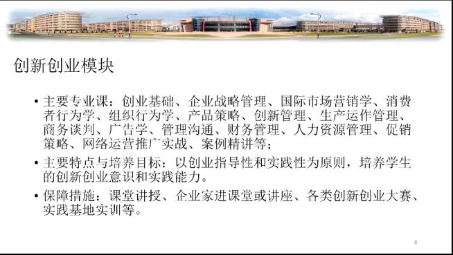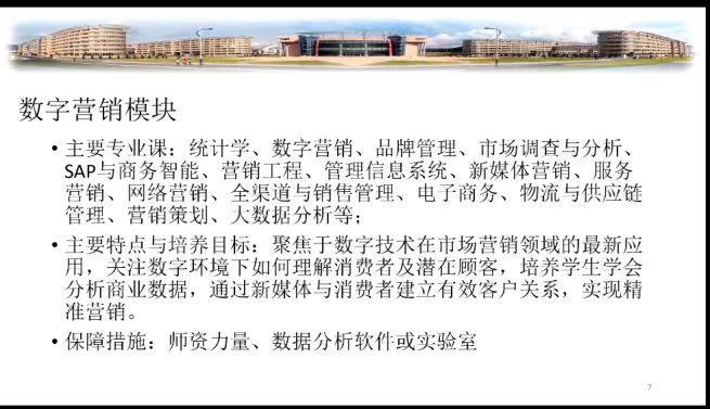李振坤老师从数字营销、数字创新两大模块讲述了市场营销专业的特色化转型,在此基础上强化英语及日语等语言类特色,培养学生创新创业意识和实践能力。