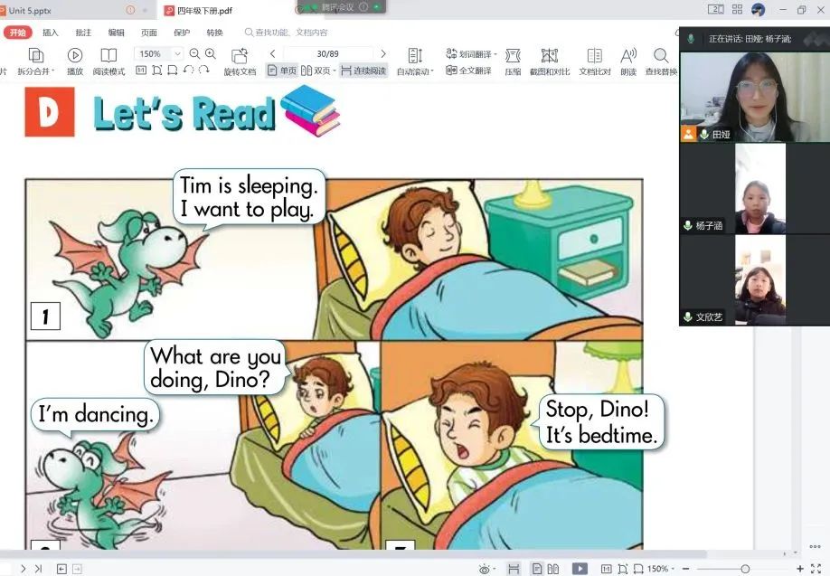 直到我看到了这个可爱的一年级小朋友,她面对镜头,端正地坐着,时刻跟紧我的思路,思考我提出的问题,用奶奶的声音说出自己的答案。这样的表现,让我逐渐放松下来,我不再像之前那样紧张拘谨,我逐渐开始放松下来按照自己准备的ppt讲下去。每一节课我都会先带小朋友复习之前学过的内容,令我惊喜的是,居然大部分内容她都是记得的,她真的把我的话放在了心里。我有一种前所未有的自豪与欣喜,这让我更有动力教授小朋友更多知识。