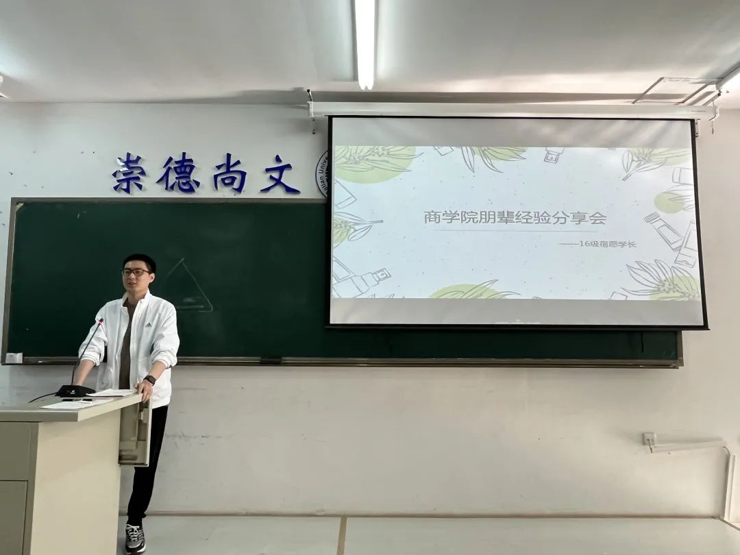 于明德楼102教室举办朋辈经验分享会,本次分享会邀请到16级宿愿学长作为主讲人。