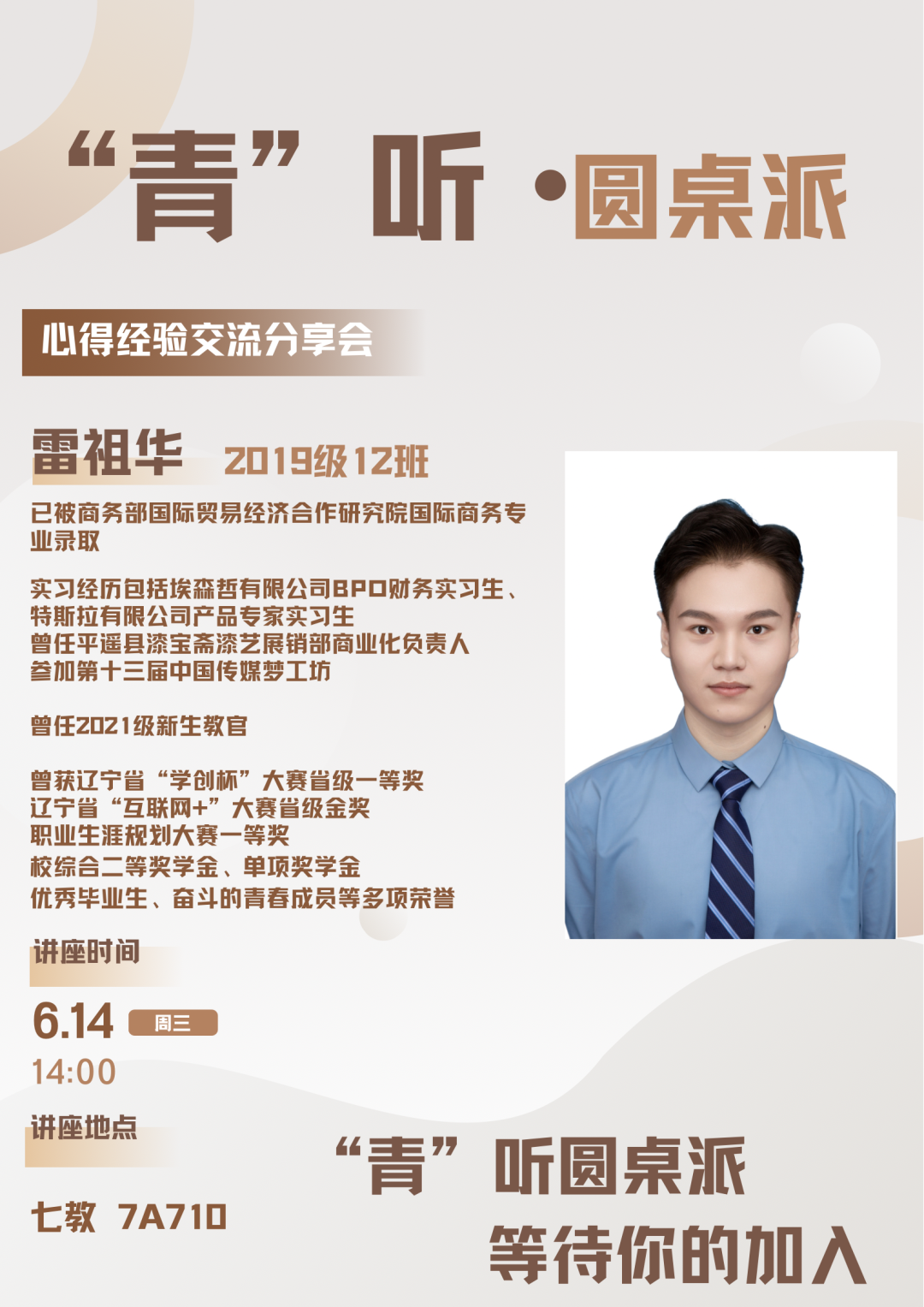 “青”听•圆桌派,青春正当时。此次分享会的召开,解答了同学们对于考研、实习方面的相关疑惑,让同学们对接下来的学习生活有了新的思考和规划,进一步明确自身的职业发展方向。