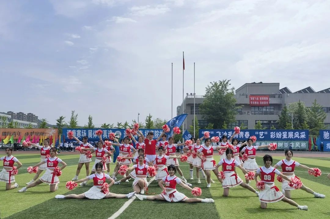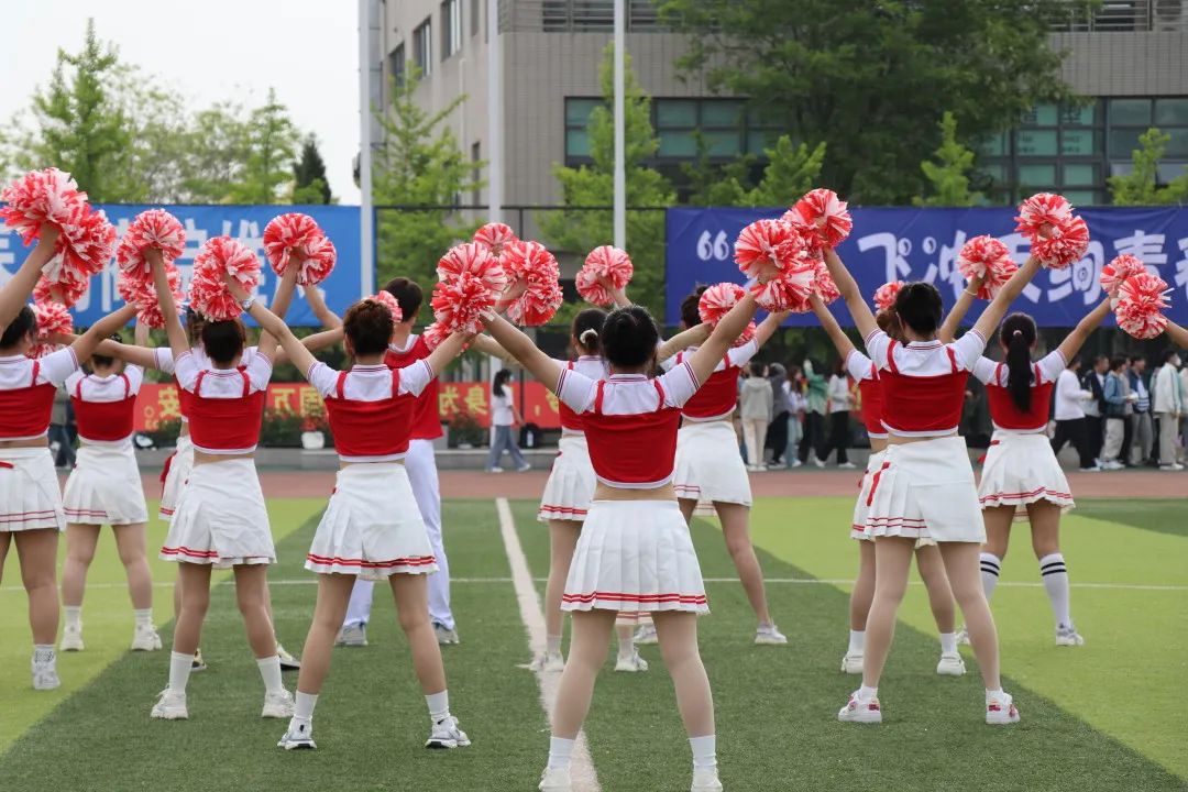 啦啦操队是一支有着青春朝气、充满无限热情与活力的队伍。绿茵场上,她们旋转跳跃,配合默契;她们挥舞着青春的身影,技巧精湛;她们踏着音乐的节拍,全力以赴。飞扬的百褶裙,在夏日的阳光的照射下更加鲜艳明亮,闪耀的花球随着动感的节拍不断起舞,迈着轻盈沉稳的步伐,跳出热烈又自信的舞姿。