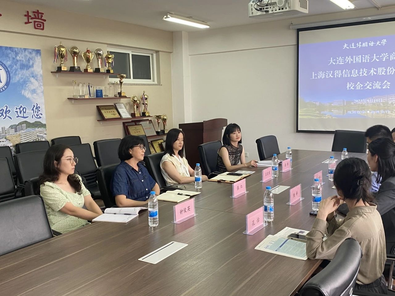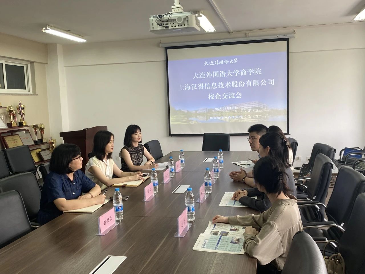 党总支副书记王欣悦、副院长张红、辅导员钟俊英、潘博与上海汉得信息技术股份有限公司校招人员于励学楼410开展了校企交流会,进行了深入的交流。