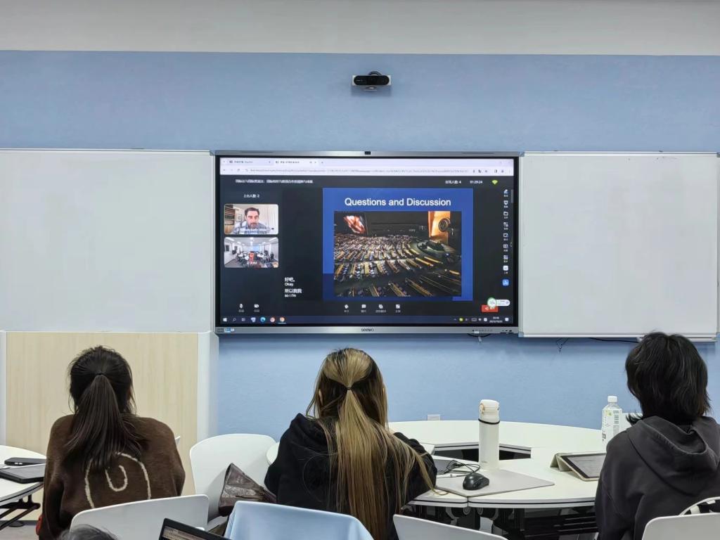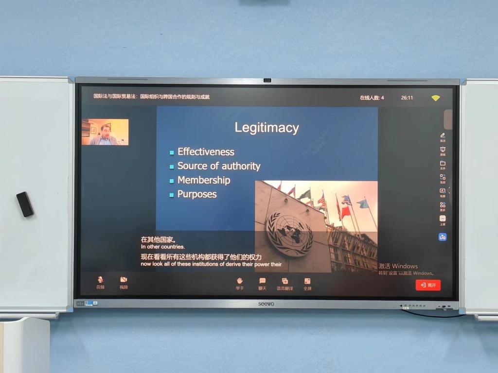 积极组织参加国际教育交流月活动。10月26日,宾夕法尼亚大学威廉·伯克·怀特教授受国际交流处邀请,通过线上线下结合的方式开展了以国际法与国际贸易法为主题的讲座。2023级国际商务专业硕士研究生和2023级涉外法治人才培养实验班同学,在学院新建的两间教研中心参加此次讲座。该讲座聚焦近年来在全球经济增速下行和需求增长等因素的影响下国际经贸发展趋势的热点问题,对全球经济体系面临的形势进行讲解和分析。
