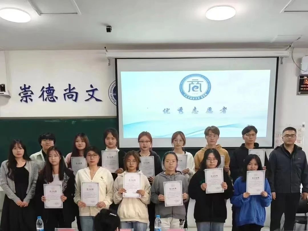 会上,潘博老师、于子舰老师、于子容老师共同为志愿者们颁发了荣誉证书及实习证明。21级张良辉、22级孟亭秀两位同学作为优秀志愿者代表发表讲话,从支教故事、课程设计、支教感悟三个方面分享了自己的经验,他们提到可以通过增加小游戏、英语动画等方式提高学生学习兴趣。