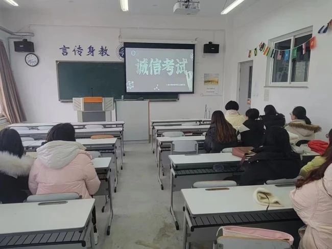 各班级干部以主题班会形式宣传诚信考试的重要性,向同学们传达了学校对于考试流程、考试管理的各项安排,以及考试注意事项,用真实案例为大家详细介绍了违反考试纪律带来的严重后果。班委们鼓励同学们认真复习,积极备考,摒弃作弊等不良风气、习惯,自觉遵守考试纪律,在期末考试中为自己半年的学习生活交上满意的答卷。