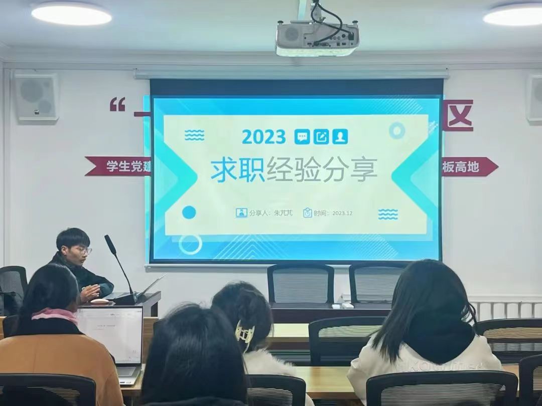 于书香园1号楼“一站式”学生社区党群活动中心开展“一站式就业引航”实习经验分享会,本次分享会由20级朱芃芃同学主讲。