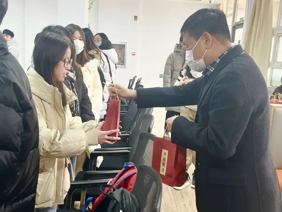 刘乃忠院长为考研学生做动员讲话,院长真诚祝愿所有考生以健康为先,全力备战,旗开得胜。希望大家保持高昂的士气,充分发挥自己的潜力,战胜困难,取得优异的成绩。学院老师们带着满满的祝福和激励,亲自为每一位考研学子送上了特别准备的助力礼包。