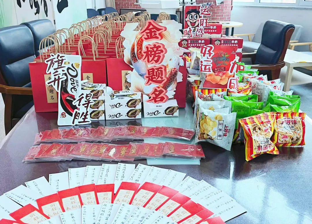 同学们纷纷领取了礼包。每一份礼包背后都承载着老师们的心意和祝福,而这份关怀和支持将伴随着考研学子们走进考场。他们会牢记这份暖心礼包所带来的力量和鼓舞,坚定地向着梦想前行,相信大家定能踏上胜利的舞台。