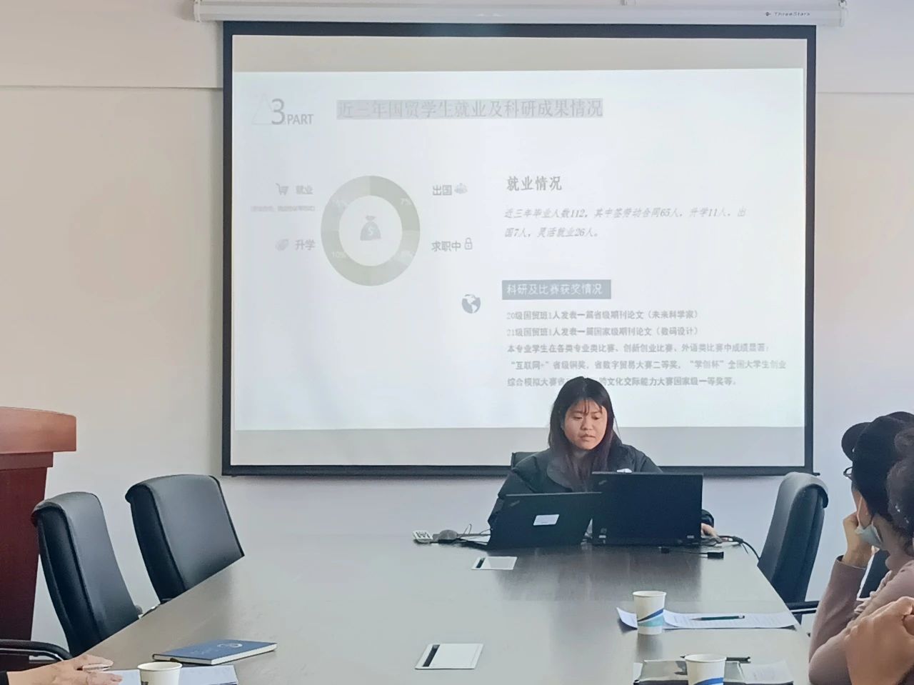 国际经济与贸易专业邢梦玥主任精准判断了国际经贸专业建设的未来发展方向,提出了多条建设性意见。邢老师强调应与学院内其他专业合作建设试验室,开展数据分析教学;并鼓励教师参与教育改革,利用优质跨校资源,组建科研团队。
