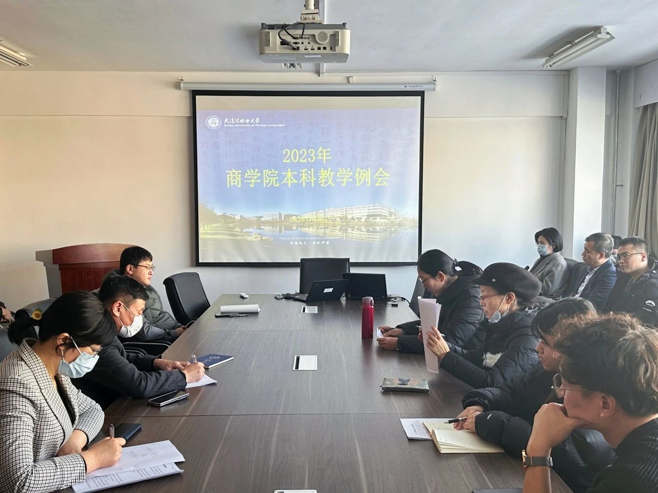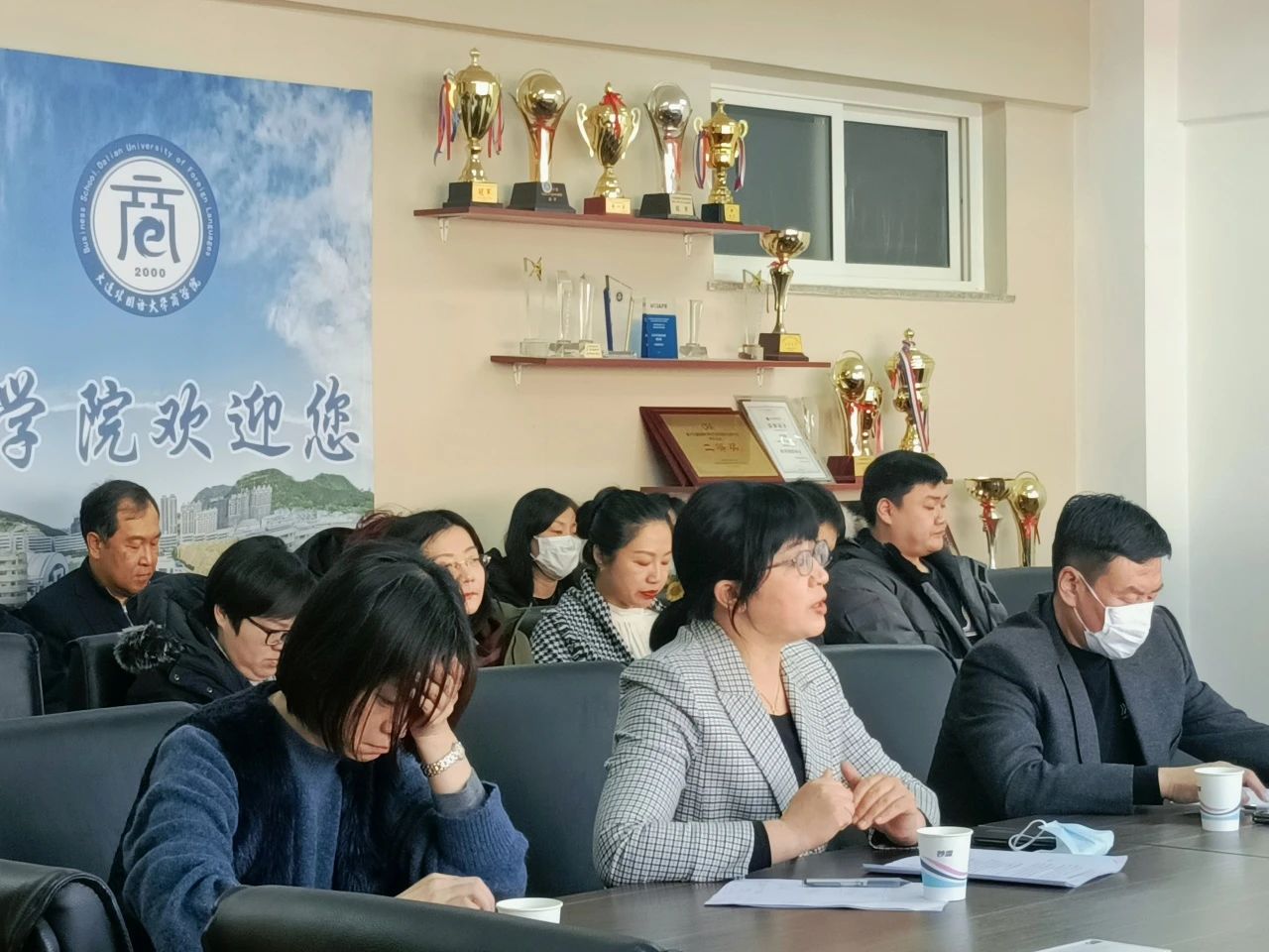 全体教师参加会议。