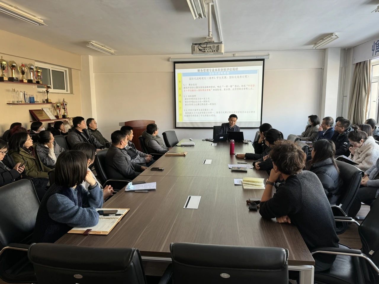 本次会议中,各专业教研室主任以本专业教学实际情况为落脚点,汇报了为迎接2024年本科教育教学审核评估工作所做的准备工作,重点分析了当下存在的教学难关与专业建设瓶颈,着力于规划专业未来发展路径,交流本科教学经验,并提供了诸多可供参考的教学思路。