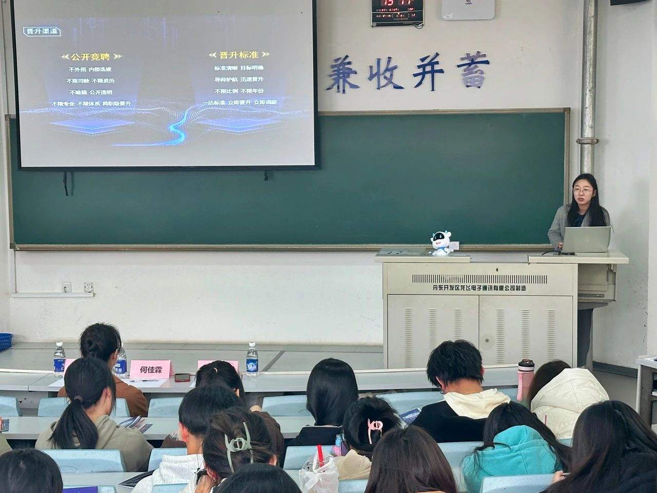 会议伊始,张瑶女士从发展历程、企业实力、培养方案、人才理念等多方面介绍奥克斯集团,指出“大学生是公司最重要的储备人才”,并通过列举优秀员工的晋升经历、公司日常丰富活动及激励机制展现了奥克斯良好的工作氛围,为同学们进一步了解奥克斯集团打开了窗口。