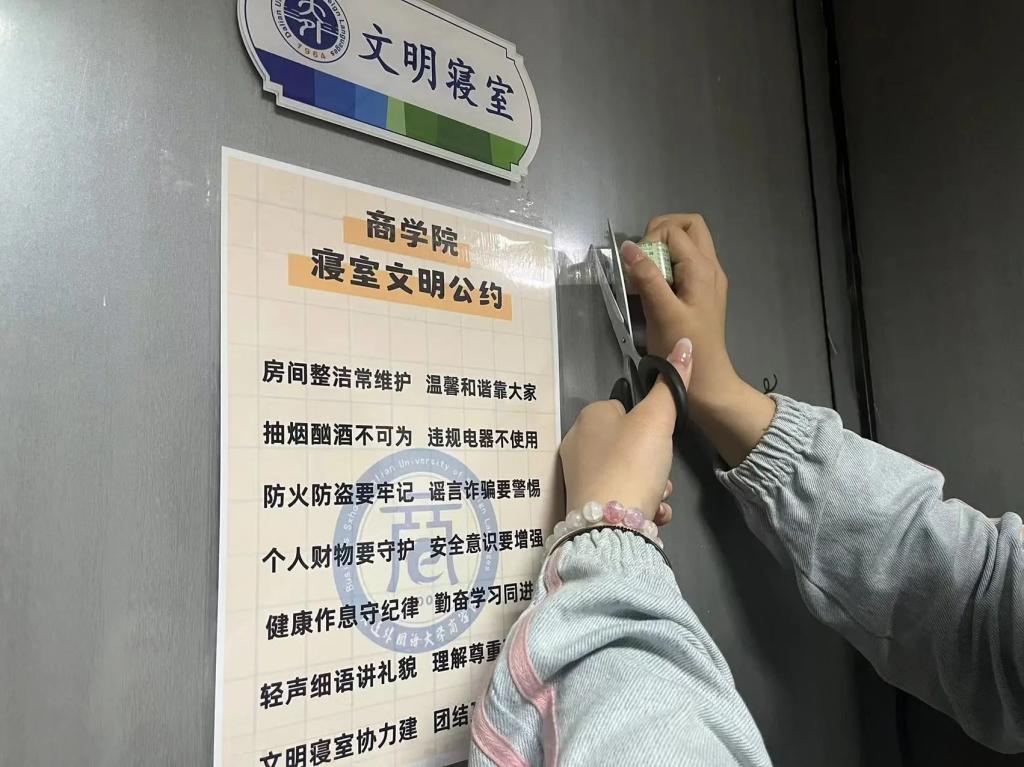 同寝同心,共筑共进。为进一步营造温馨有爱、积极向上的寝室氛围,加强公寓文化建设,学院积极开展“星级寝室”“花式打卡”等特色活动。以活动为平台,展现宿舍风采与活力,进一步提高宿舍成员的凝聚力、向心力,不断丰富学生校园文化生活。