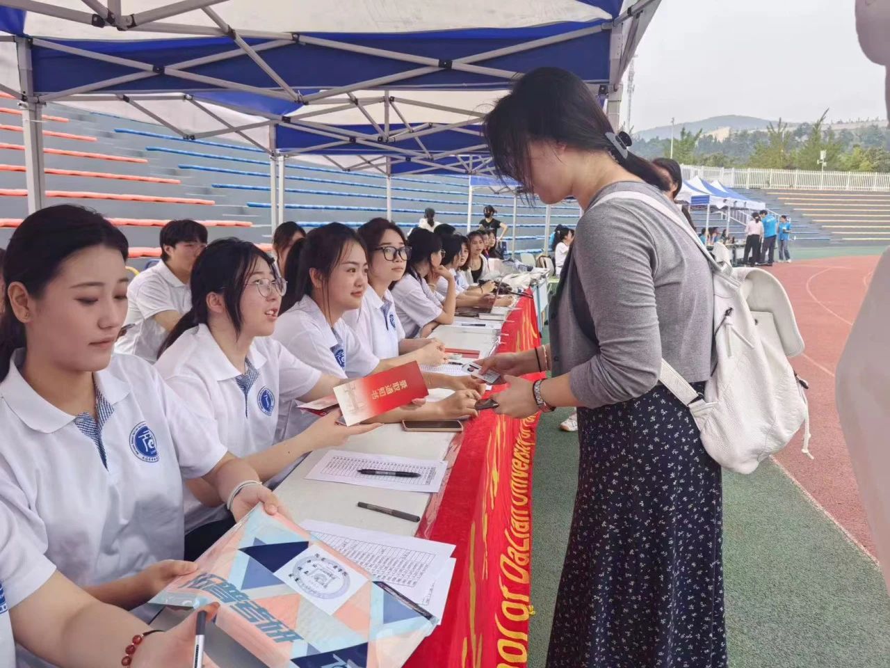 新生报到处,并安排志愿者在校内车站接待处对新生进行迎接和引导。