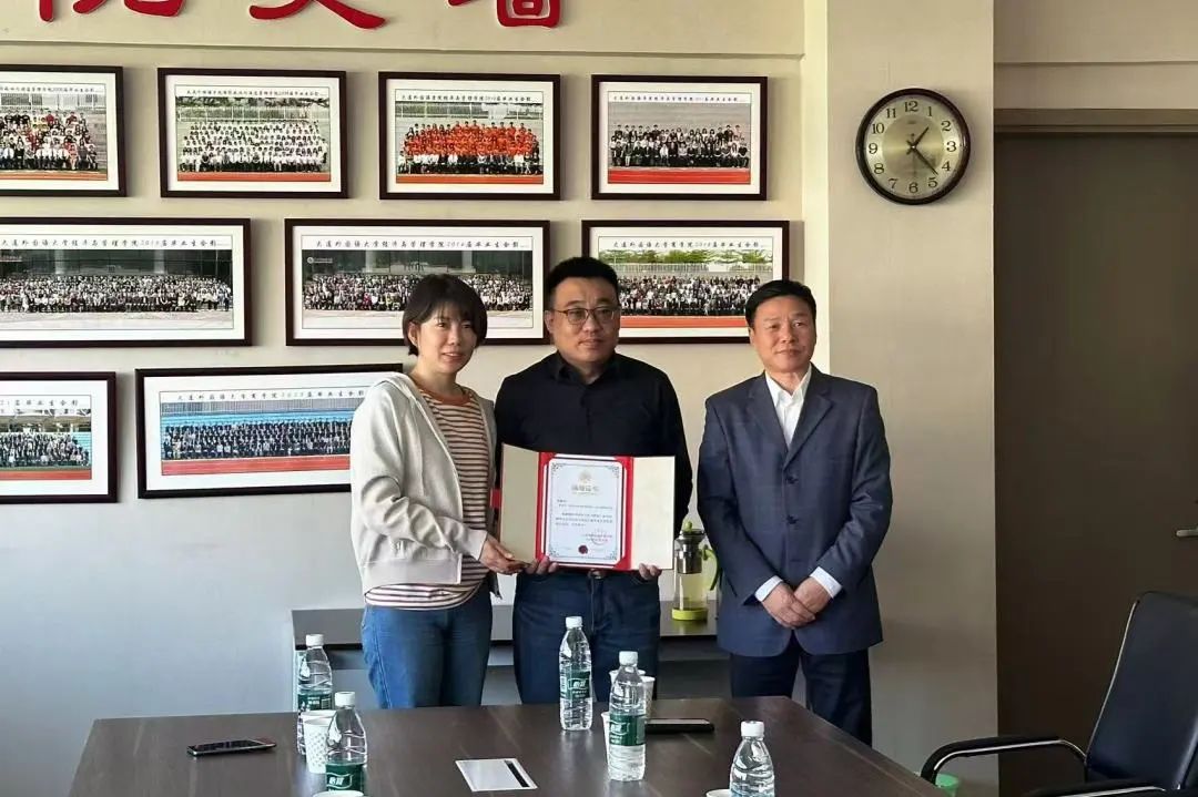 教师出席。2001级原冶学长向学院捐赠了办公用品。原冶学长在讲话中感谢恩师启智润心、春风化雨的谆谆教导,追忆了与同窗的深情厚谊,并祝福母校千秋鼎盛,万载荣昌。院长刘乃忠对原冶学长表达了由衷的感谢,他表示,学院的发展离不开校友们的关心和支持,期待未来大家能继续携手同进,为大外添砖加瓦,共创美好未来。