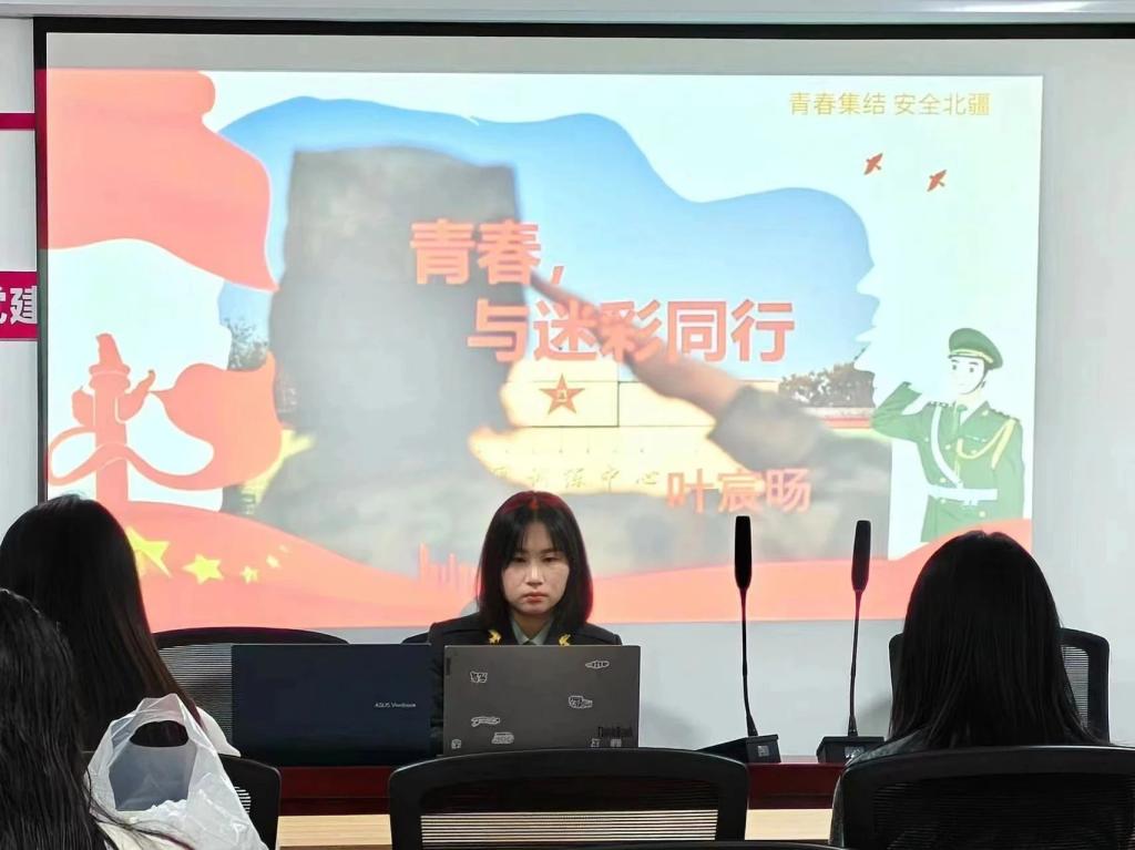 最后,叶宸旸学姐讲述了两年军旅生活的收获。她说,自己不仅学习到通信方面的技能,更深刻理解了团队协作的重要性和肩负的使命,鼓励同学们要勇担青年之责与时代之任。
