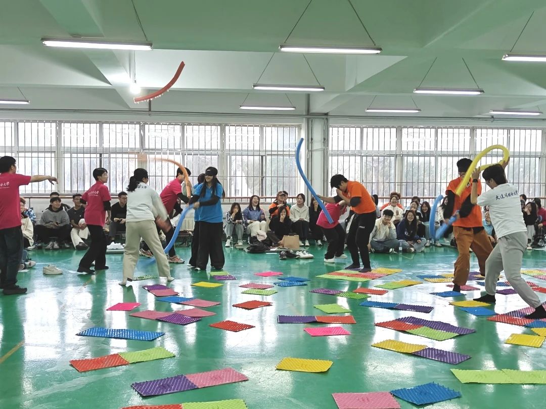 本次活动分为游戏、表演及颁奖三个环节。游戏环节设置了“松鼠大树”“接力作画”“蒙眼互打”“大接力”“踩气球”五个项目。学生干部们以部门为单位,积极参与各项游戏,在游戏中互帮互助、密切配合,为了团队的荣誉全力以赴。现场欢声笑语不断,气氛热烈非凡。