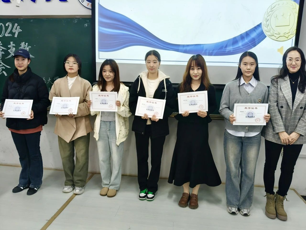 22级佟婧怡、23级呼延洋子两位同学作为优秀志愿者代表发表讲话。从前期交流、课程设计、心得体验三个方面,讲述了自己在支教过程中的亲身经历,分享了关于志愿者工作的宝贵经验。