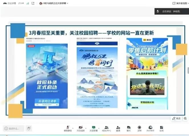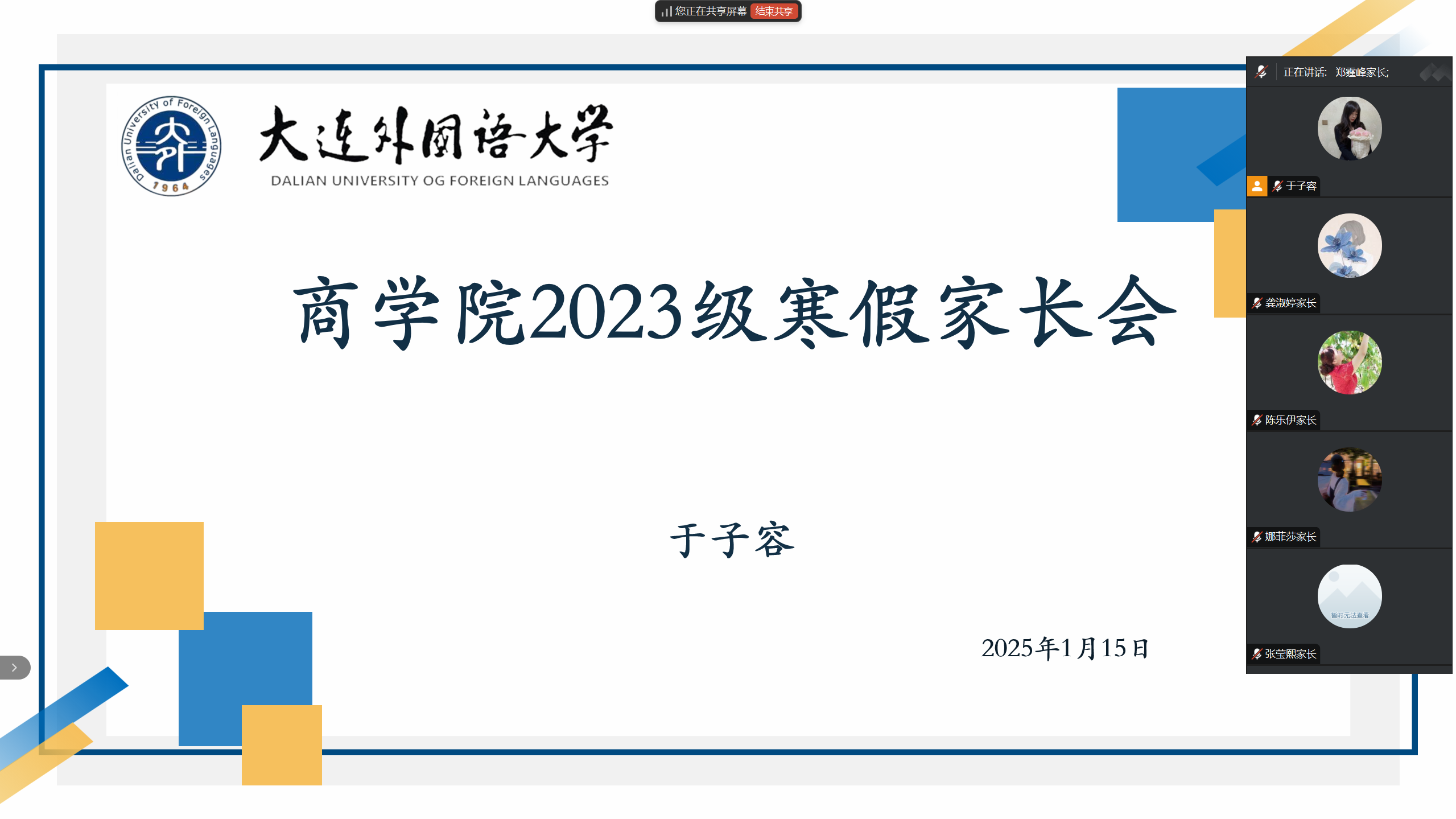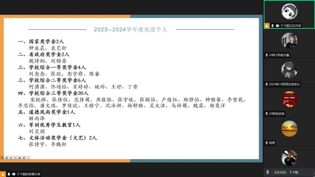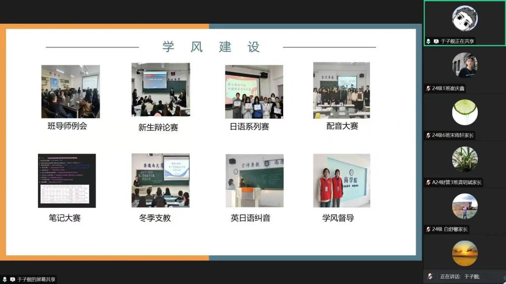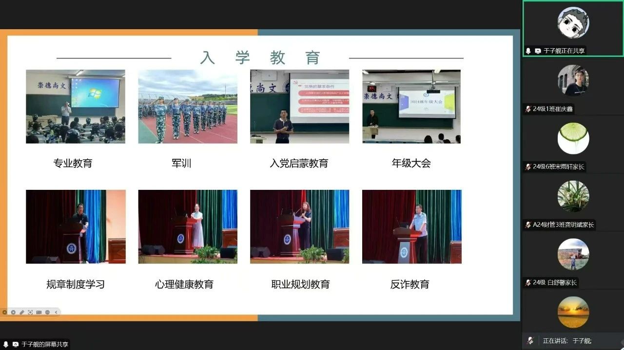 召开本科生线上家长会。会议分别由2021级辅导员钟俊英、2022级兼2024级辅导员于子舰、2023级辅导员于子容主持并讲话,桃子视频