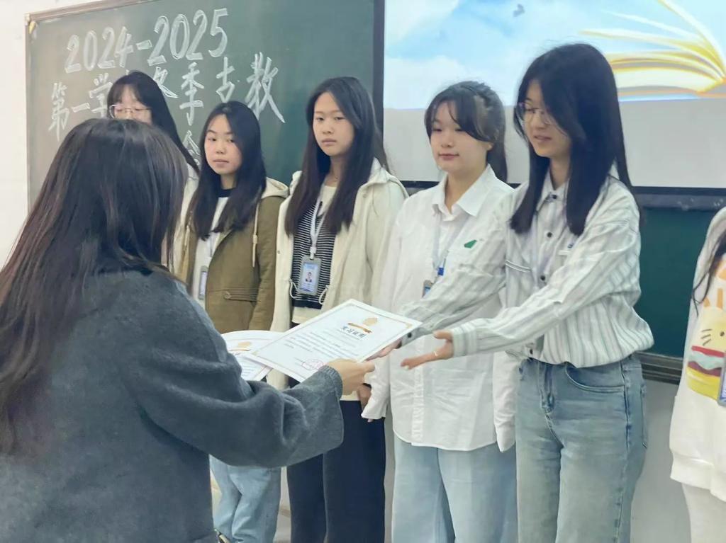 随后,大会进入颁奖环节,钟俊英老师和于子容老师为在支教活动中的优秀志愿者颁发了荣誉证书和实习证明,对他们的辛勤付出和卓越贡献给予表扬。