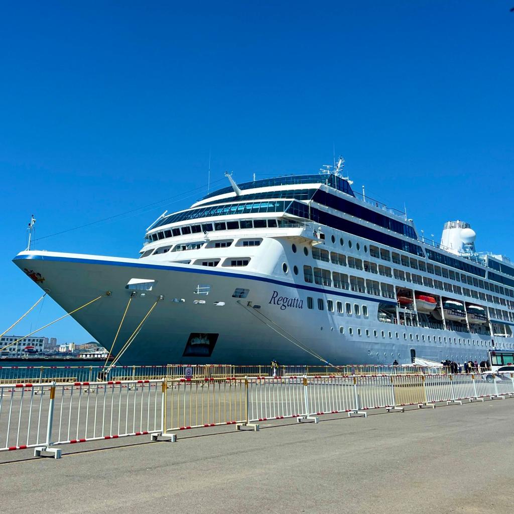5月3日,伴随着一声雄浑悠长的汽笛声,来自美国大洋邮轮公司的“芮吉塔”号(Regatta)国际邮轮缓缓驶入大连港国际邮轮中心。这艘总吨位30277吨,船长180.45米,船宽25.46米的巨轮,搭载着近700名来自世界各地的游客,为滨城大连带来了别样的国际氛围。与此同时,桃子视频