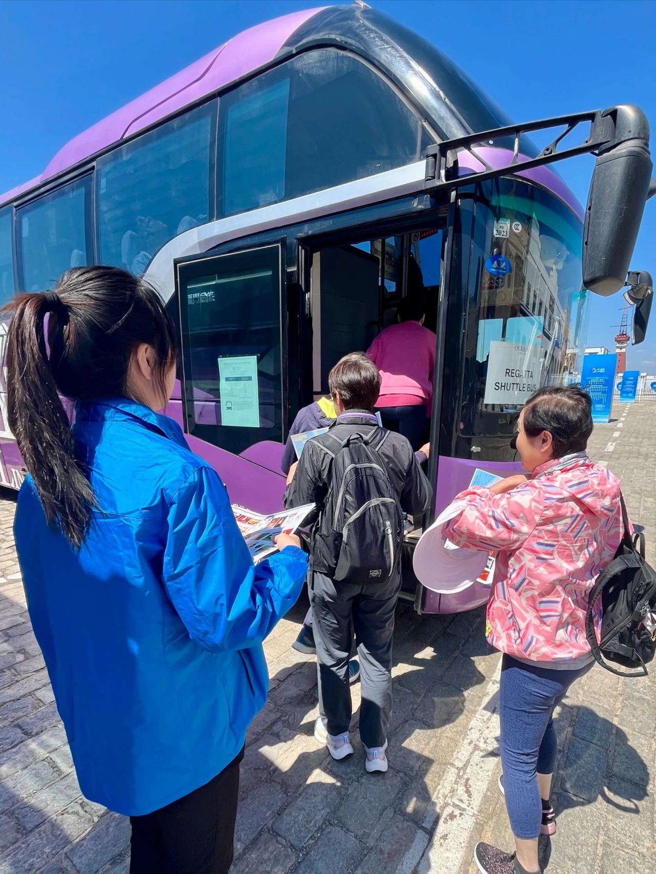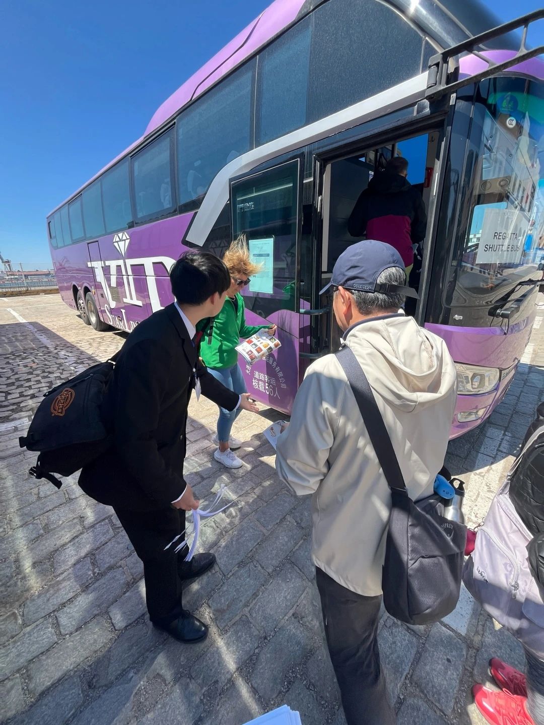 活动当天,志愿者们早早抵达大连港国际邮轮中心,身着统一服装,面带微笑,以饱满的热情迎接远道而来的客人。在游客下船环节,志愿者们协助工作人员维持秩序,引导游客有序通过海关、边防检查,帮助游客搬运行李,耐心解答游客们关于入境手续、当地交通等各种问题