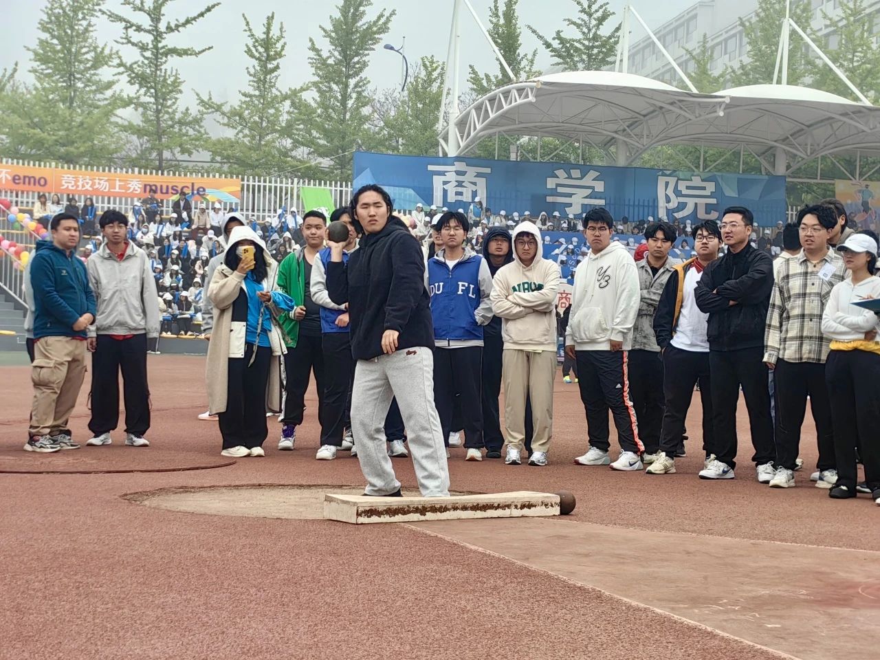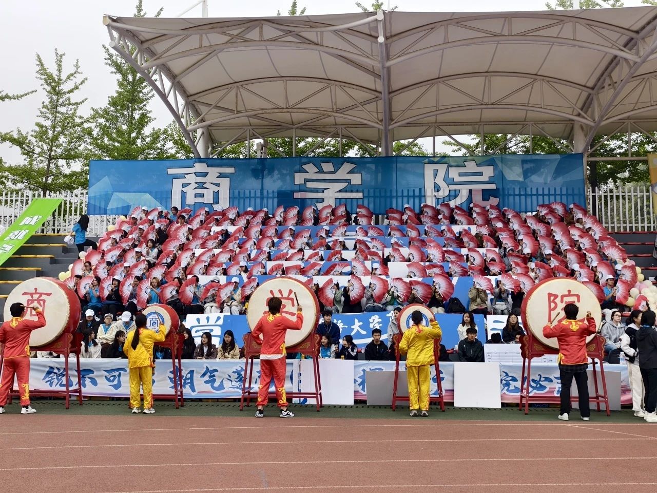 观众席上,商院学子化身为最热诚的后援团。他们挥舞彩旗,用震耳欲聋的欢呼声和此起彼伏的加油声,为运动员们鼓劲助威,传递团结的力量,让赛场充满激情与温暖。