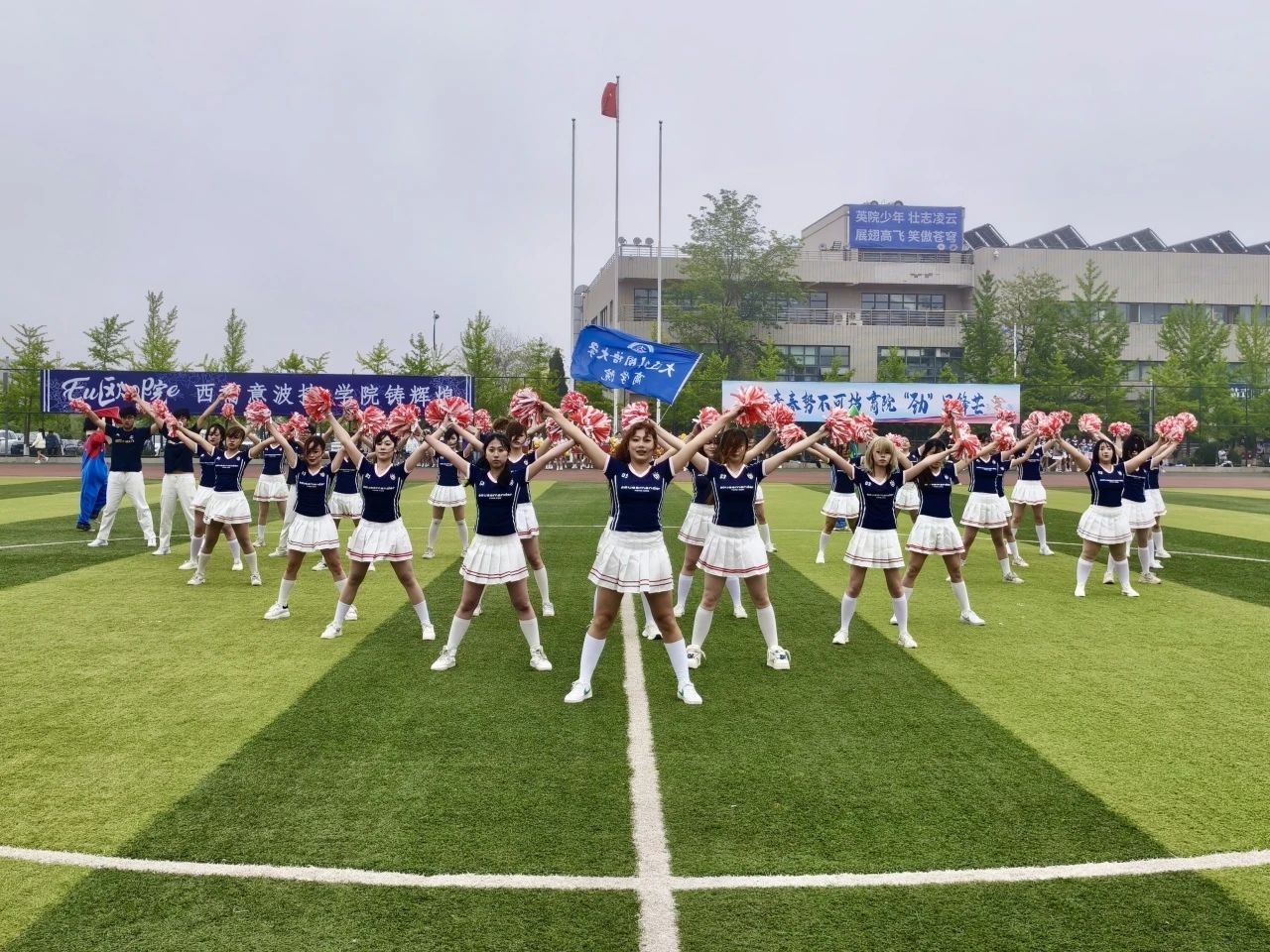 绿草如茵的场地上,啦啦操队员们带来热情洋溢的表演。她们手持花球,笑容灿烂,以灵动的舞步和轻盈的身姿诠释着青春的活力。每一个跳跃、每一个旋转,都似在诉说着青春的自信与张扬,她们让比赛绽放出绚丽夺目的色彩,迈向激情澎湃的高潮。