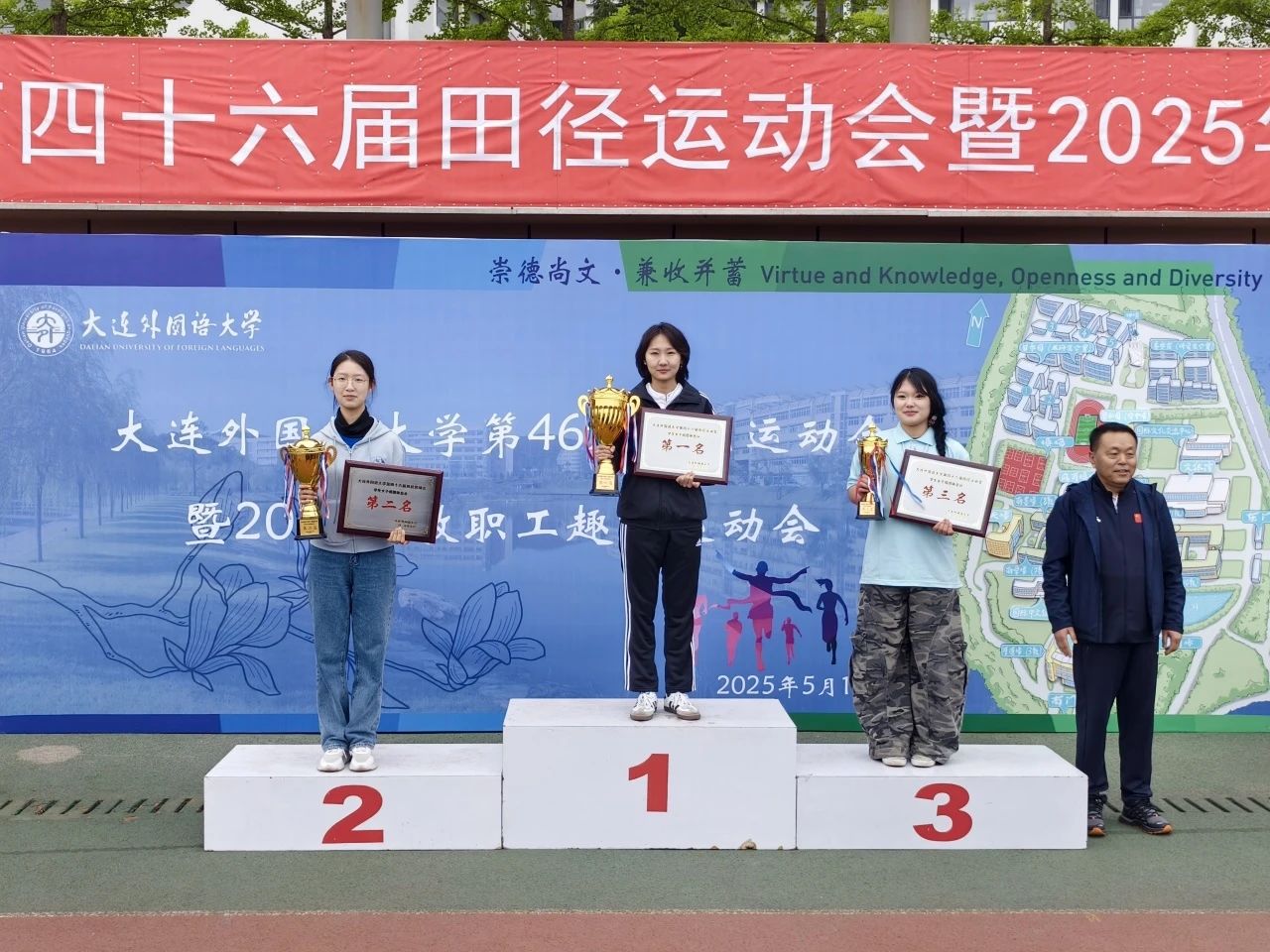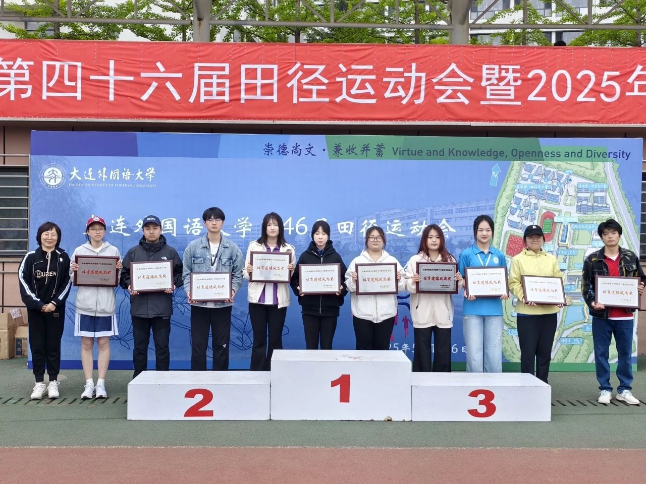 第46届田径运动会学生组“学生女子组团体总分第三名”和“体育道德风尚奖”。