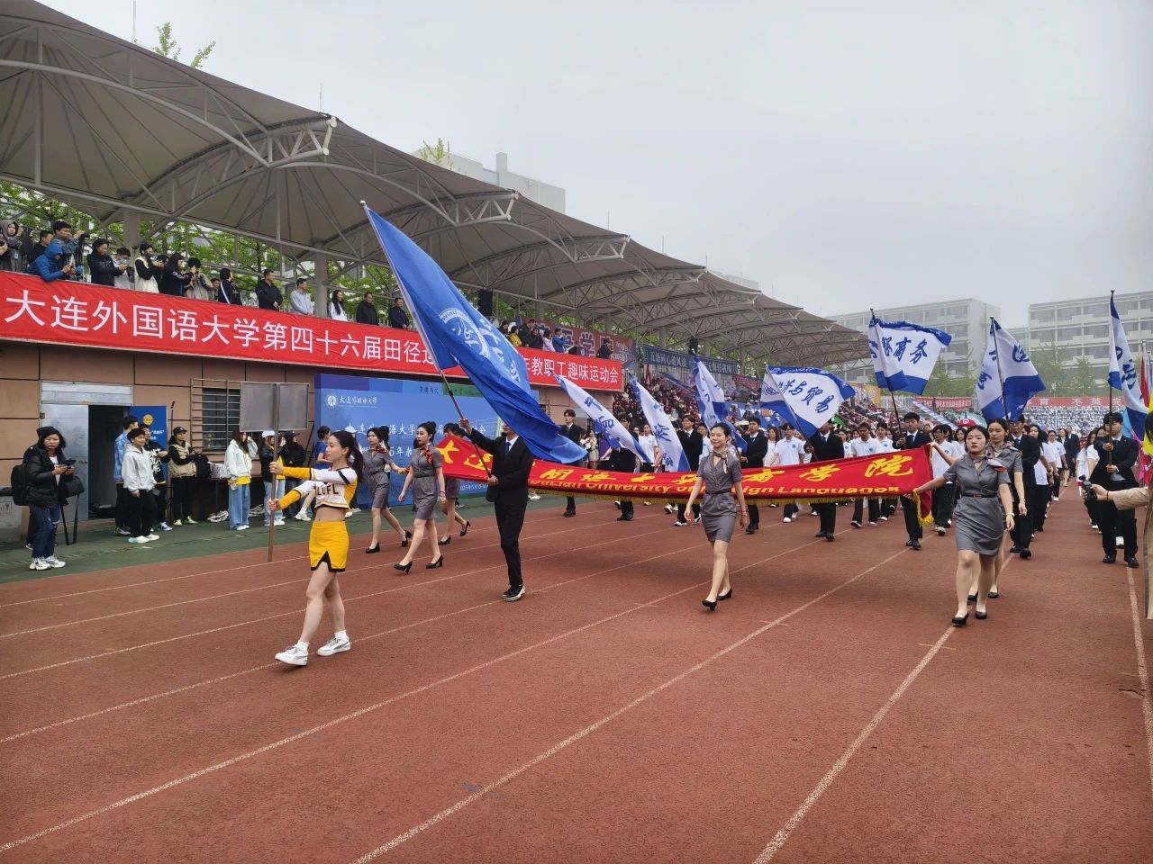 当阳光倾洒在绿茵场,当细风轻拂过彩旗,运动会的开幕式拉开帷幕。开幕式上,激昂的音乐奏响青春的序曲,各学院方阵依次入场。我院师生早已摩拳擦掌,以整齐划一的步伐、响彻云霄的口号,展现出“惟商惟学,尚德尚行”的风采。每一步迈进,都踏响着锐意向上的鼓点;每一声呐喊,都传递着开拓进取的信念,彰显了商院人蓬勃的朝气与昂扬的斗志。