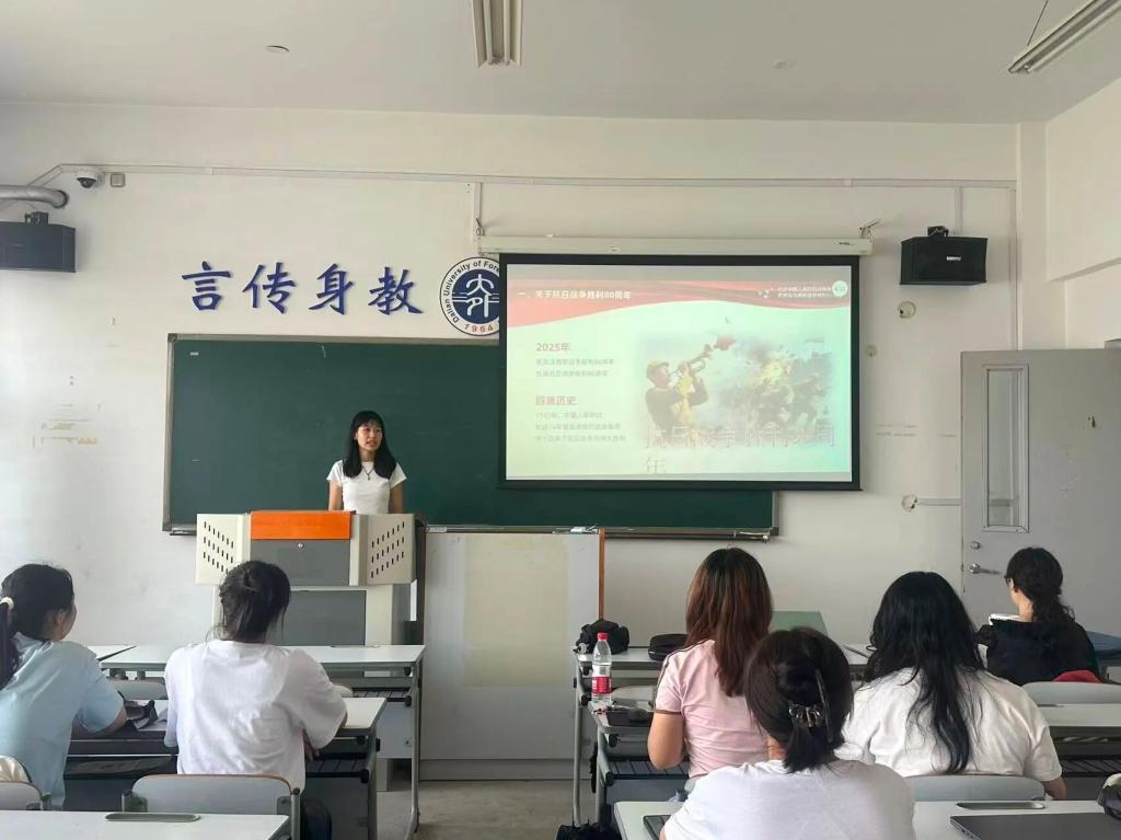 学院各团支部组织开展纪念中国人民抗日战争暨世界反法西斯战争胜利80周年主题团日活动。通过组织观看抗战主题纪录片、研读抗战历史文献资料等形式,带领同学们回顾艰苦卓绝的抗战历史,领悟抗战胜利的伟大意义。同学们纷纷表示:作为新时代青年,要将抗战精神内化于心、外化于行,筑牢爱国情怀,努力学习专业知识、提升综合素养,为实现中华民族伟大复兴贡献青春力量。