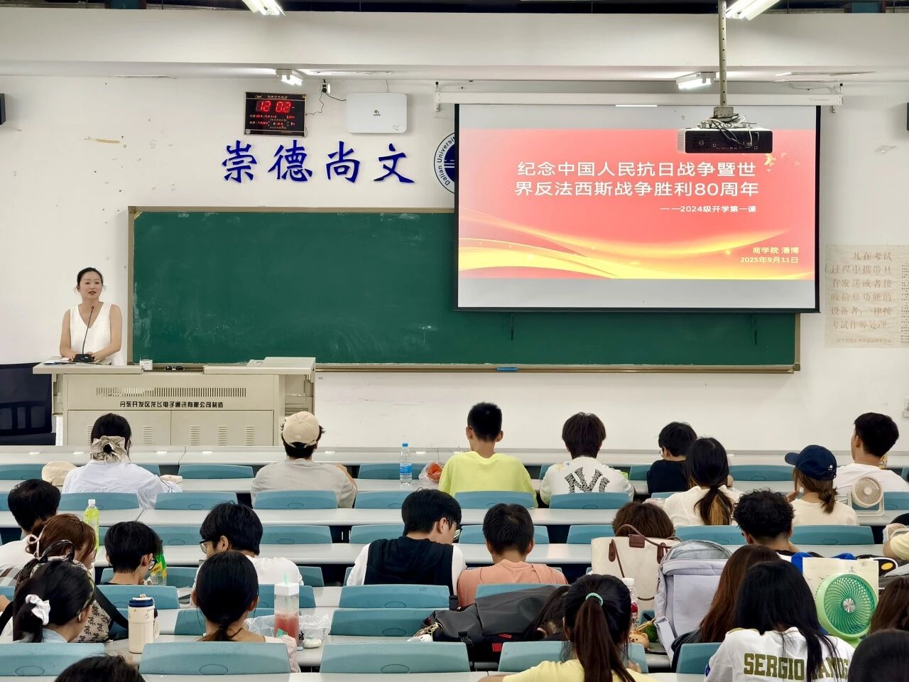 各年级组织开展“开学第一课”,带领学生共同学习习近平总书记在纪念中国人民抗日战争暨世界反法西斯战争胜利80周年大会上的讲话,通过回顾阅兵盛况、解读讲话中“铭记历史、缅怀先烈、珍爱和平、开创未来”的核心要义,结合抗战英雄事迹,让学生深刻感悟先辈牺牲精神与民族担当,鼓励青年学子勇担历史使命,在中国式现代化建设的广阔舞台上挺膺担当、奋发有为。