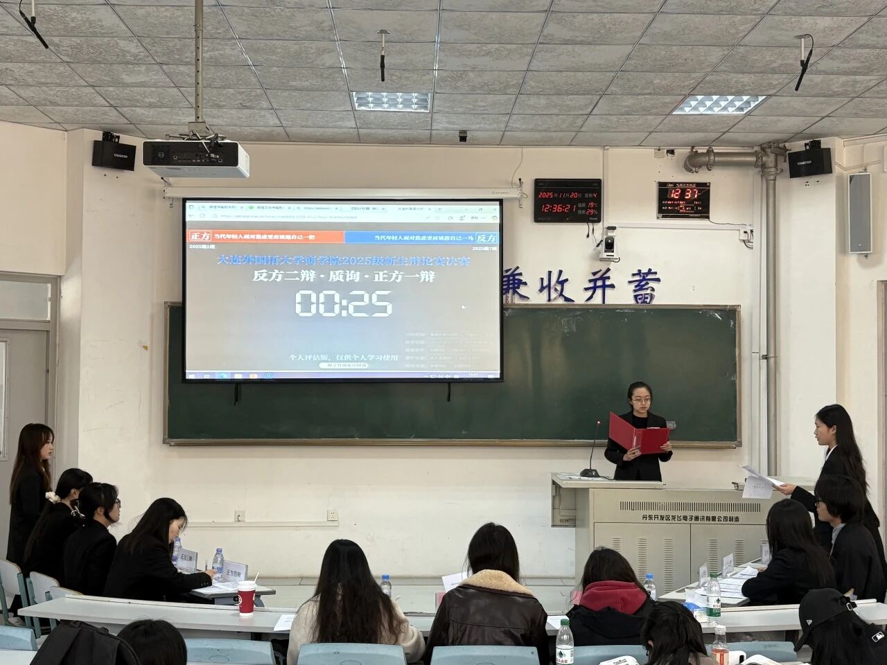 辩论赛决赛在明德楼105教室举行。本次赛事以“面对焦虑我们该放自己一马还是逼自己一把”为辩题,聚焦当代青年情绪管理与成长选择。比赛邀请到桃子视频