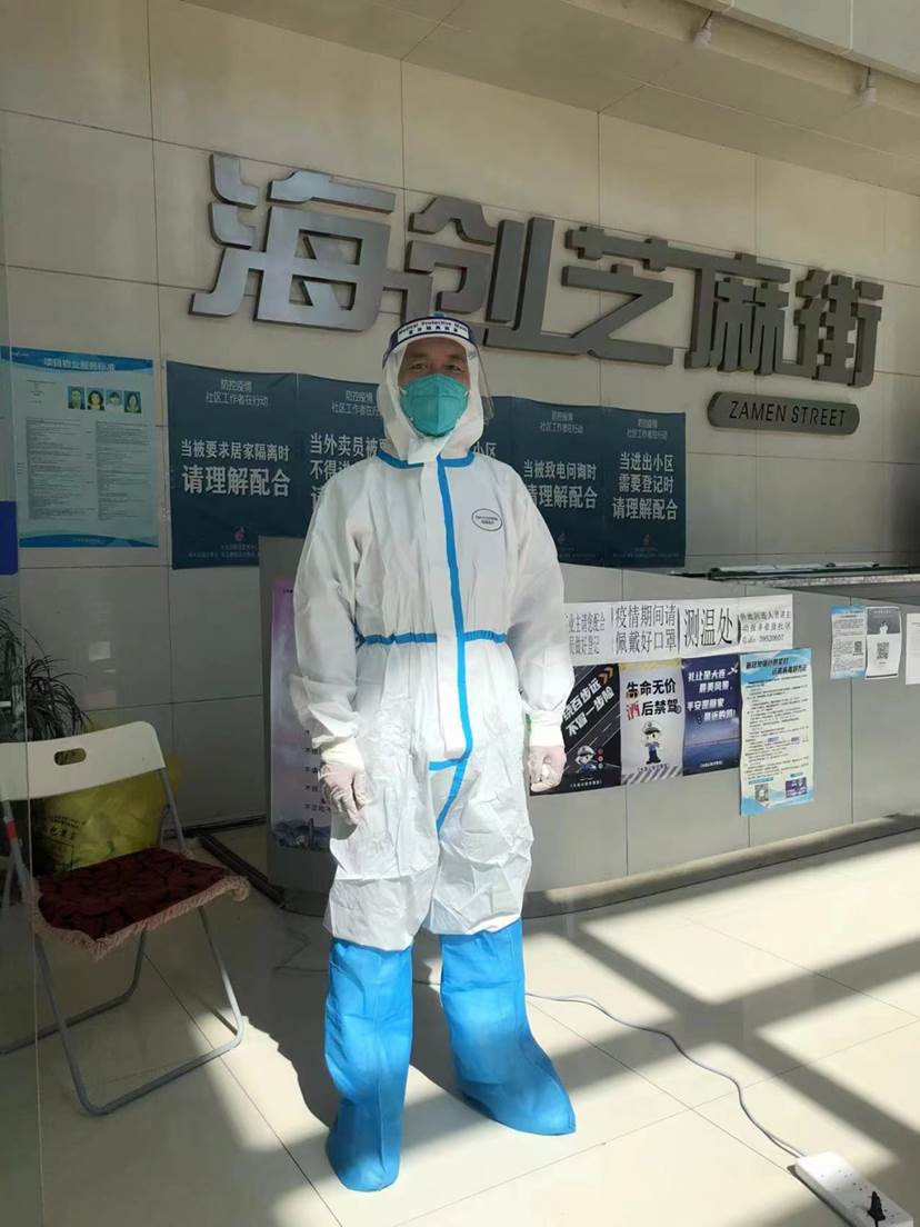 教工第一党支部书记孙梁,第一时间到高新区敬贤社区亮明党员身份,下沉至社区卡口积极承担志愿者相关抗疫工作。与社区工作人员一起进行核酸检测扫码、密接人员转运消杀、维持小区居民进出秩序、帮助居民取快递和分发预定果蔬等工作。他说:“本轮抗疫,社区管控、居民服务以及民生保障等方面工作量都非常大。党员同志理应冲在前面,不畏危险,勇于担责,与大家携手一起保证这场抗疫战役的胜利。希望我们可以携手共克时艰,共迎如常生活的回归。”