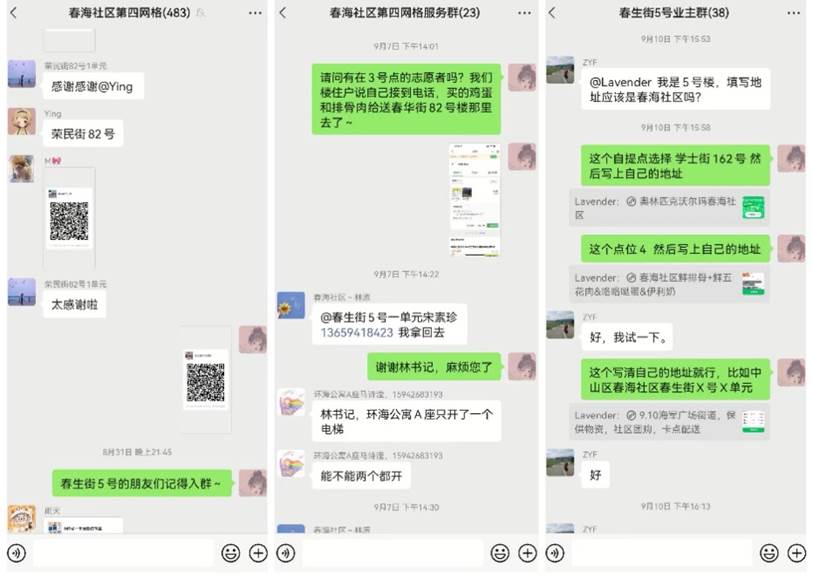 第二党支部学生党员宋素珍,在疫情爆发之际,成为了一名志愿者。她所居住的小区为老旧小区,多行动不便的年长老人,急需志愿者建立楼群,帮助将购买物资的消息同步给老人,以维持老人们在疫情期间的基本生活保障。就这样,宋素珍便从租户成为了“楼长”。为了方便管理,宋素珍帮助社区网格员统计了住户信息,这是她第一次去接触认识她的邻居们。疫情当前,社区工作人员工作繁忙,为了缓解基层人员的工作压力,宋素珍的主要任务就是在楼群里发布每日的买菜信息,解答住户的疑问。宋素珍说,“从如何下单,到询问货物到达时间,我的微信列表里加入了越来越多的邻居。当送货给邻居,听到那一句温暖问候或真诚感谢的话语,这一刻,我好像不再是漂泊他乡的租户而是真正的家人,这也许就是疫情无情人有情的暖心写照吧”。