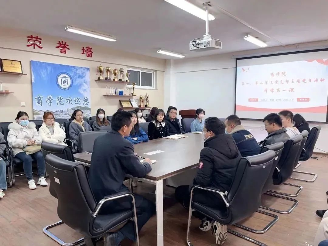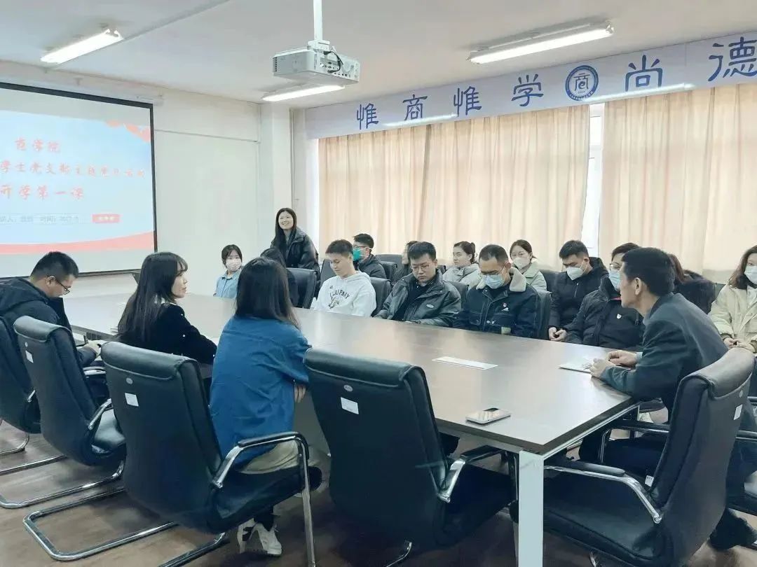 党总支书记贾哲主讲,第一党支部书记潘博和第二党支部书记钟俊英主持,学生支部全体成员参加会议。