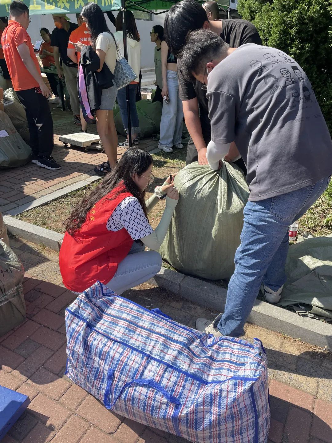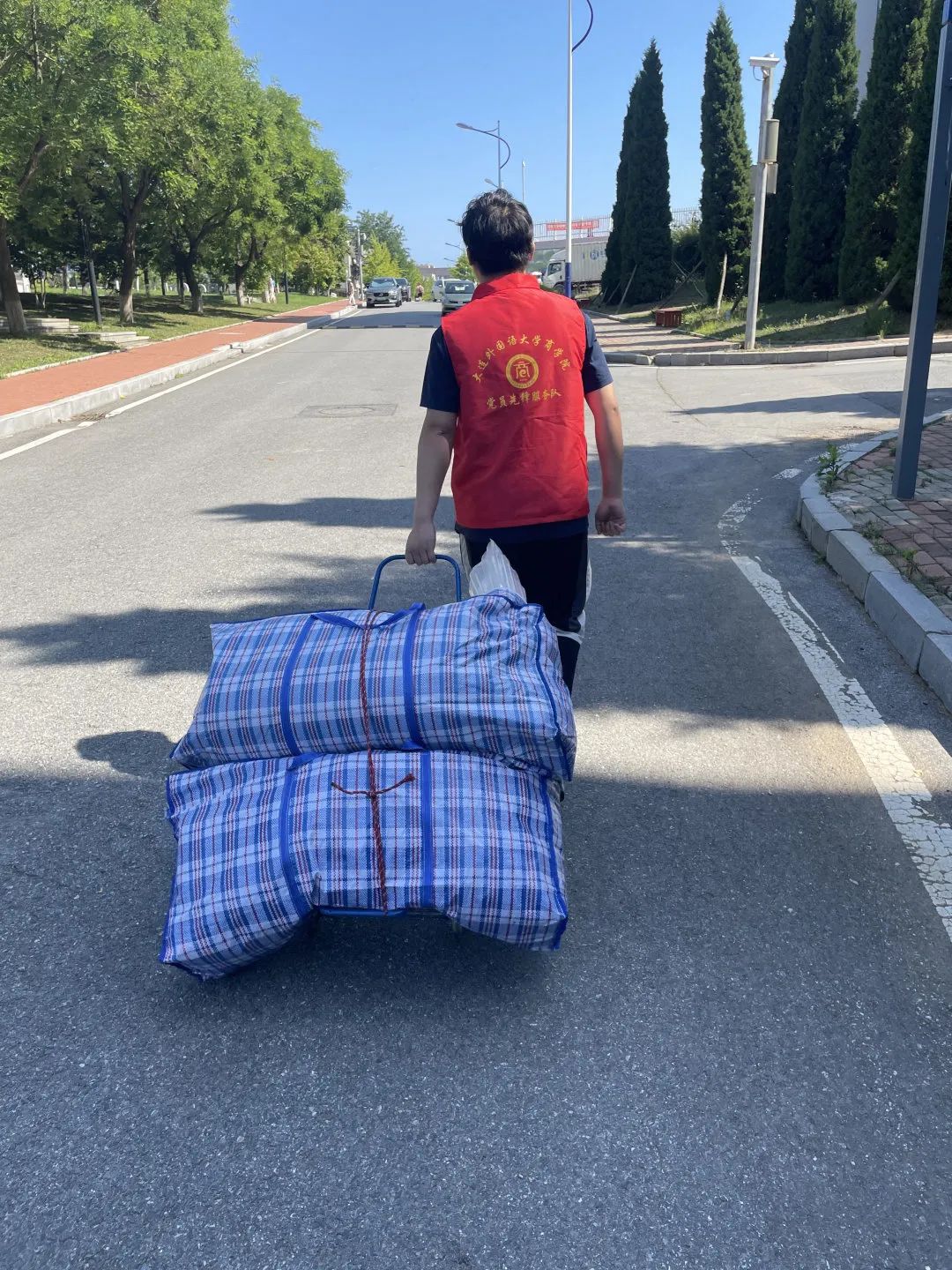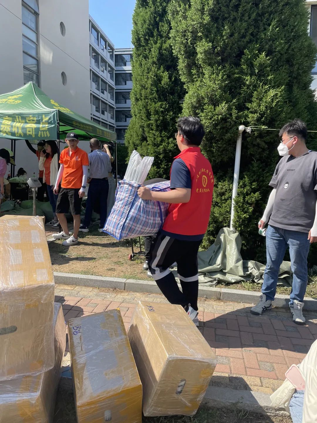 于宿舍楼下设立党员服务站,帮助毕业生们打包、搬运行李。在炎炎烈日下,每一位志愿者认真负责、热情周到地帮助毕业生,数次往返于宿舍和快递站之间。搬运行李过程中,学生党员也不忘对学长学姐们送上毕业祝福,让离校毕业生们倍感母校的温暖。志愿者们表示当初学姐学长们不辞辛苦,迎接自己入学,如今他们毕业,自己也要尽一份绵薄之力,将这份关爱行动传承下去。