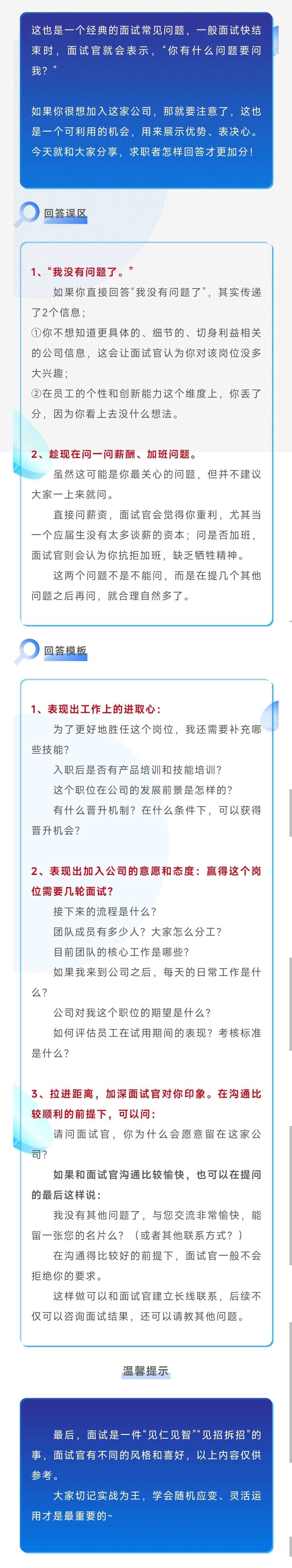 【就业指导】干货分享 | 面试高分回答1:你还有什么想问的吗?