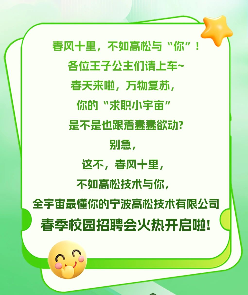 【2024届春招】宁波高松2024届春季校园招聘正式启动