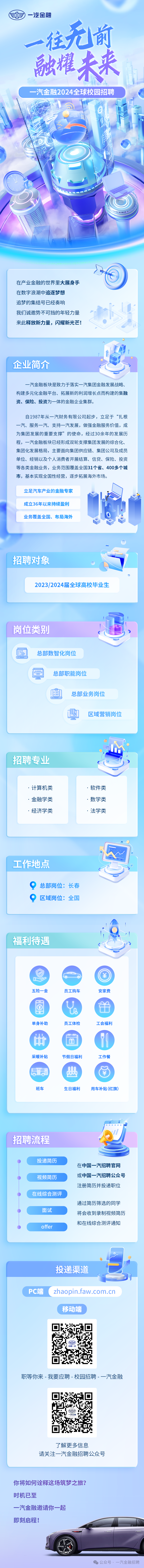 【2024届春招】一汽金融2024届春季校园招聘正式启动