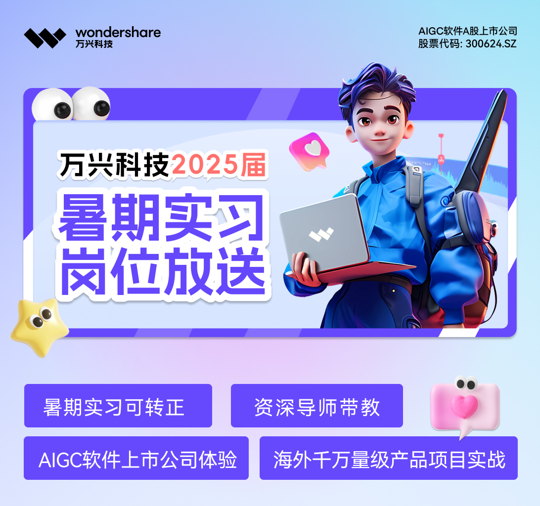 【2025届招聘】万兴科技2025届实习生招聘正式启动