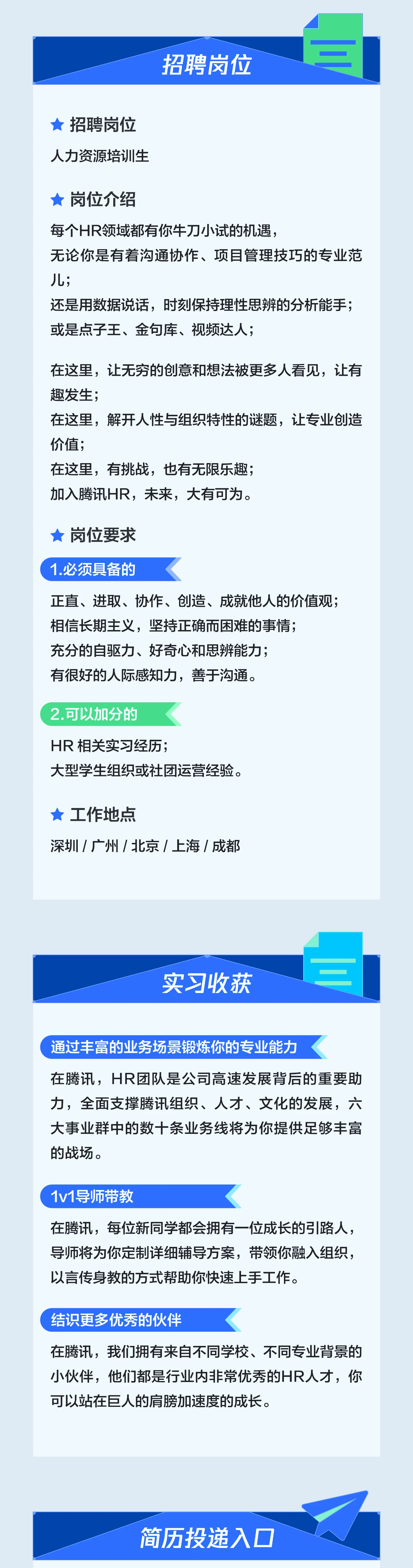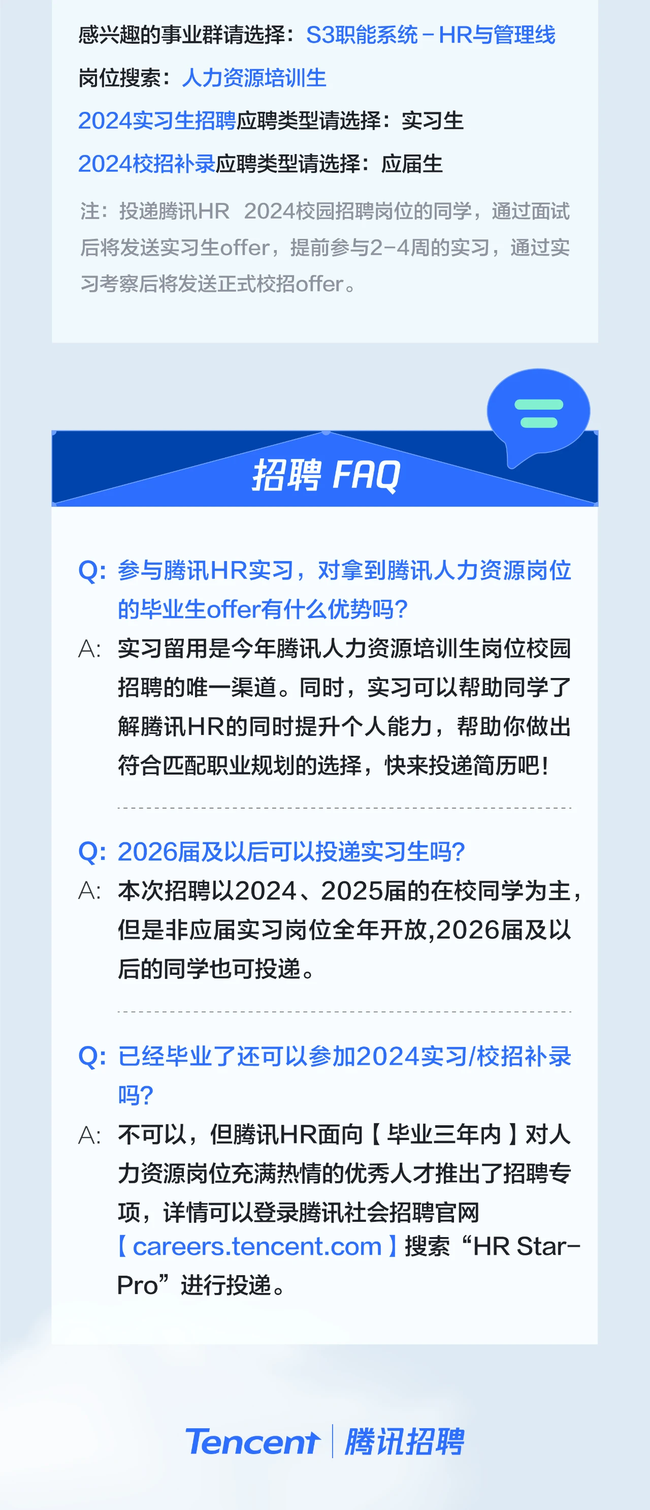 【2025届招聘】腾讯HR2025届实习生招聘正式启动